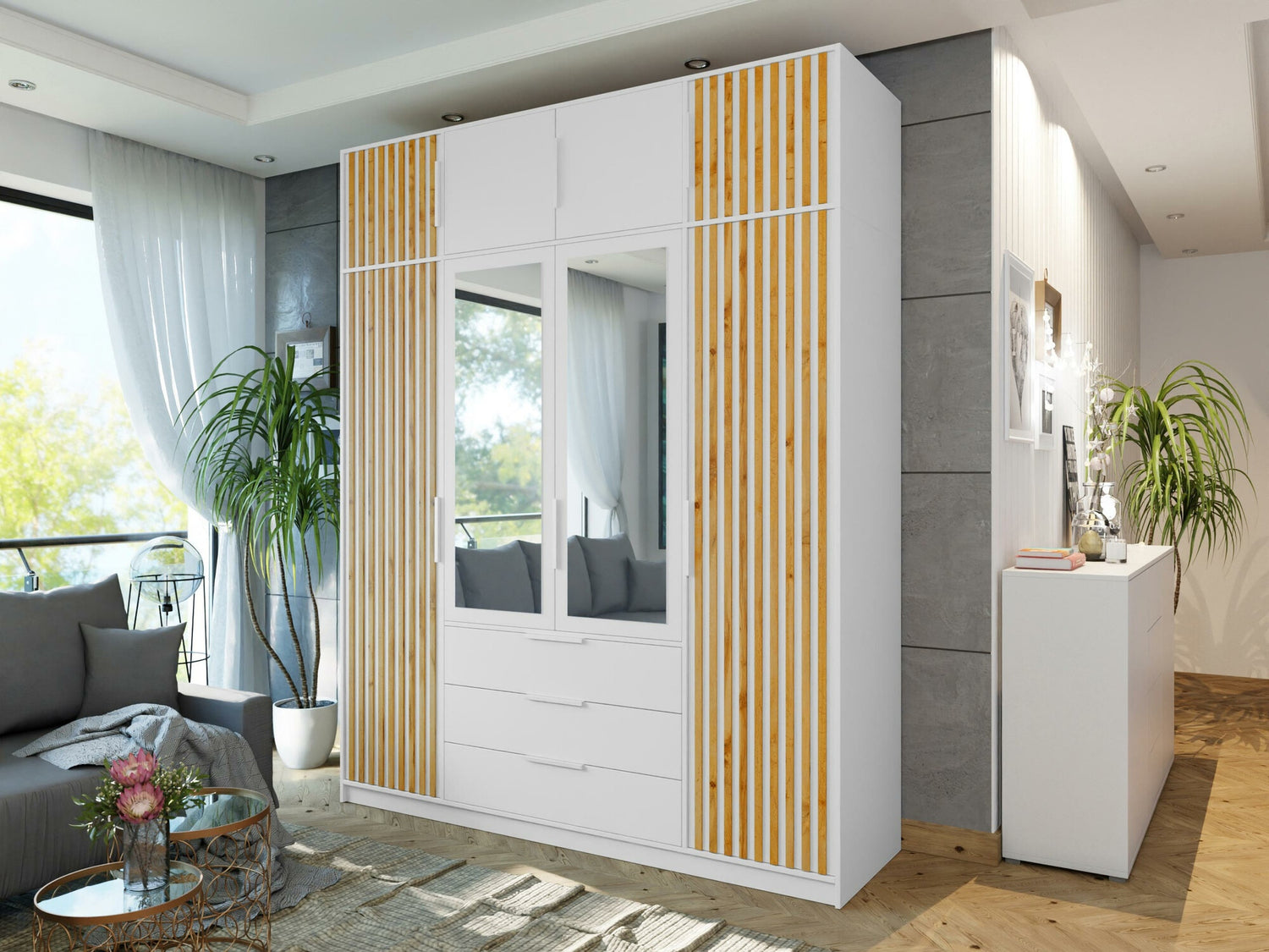 Gardróbszekrény Szafa BALI LUX D4 + nadstawka, Szín: Fehér + Wotan tölgy