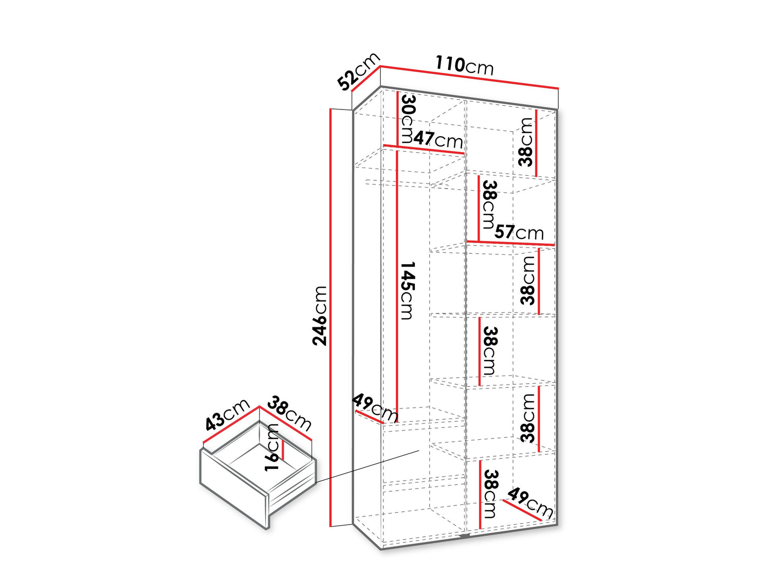 Gardróbszekrény Szafa COMO 1 100/110 (gł.42/52), Szín: Kasmír, Fogantyú színe: Aranysárga, Fiókok: Igen, Szélesség: 110 cm, Mélység: 52 cm