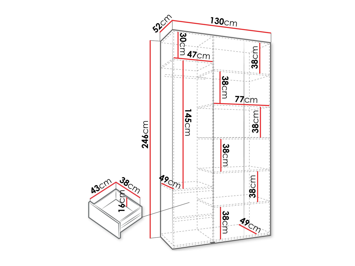 Gardróbszekrény Szafa COMO 1 120/130/140/150/160 (gł.42/52), Szín: Kasmír, Fogantyú színe: Aranysárga, Fiókok: Igen, Szélesség: 130 cm, Mélység: 52 cm