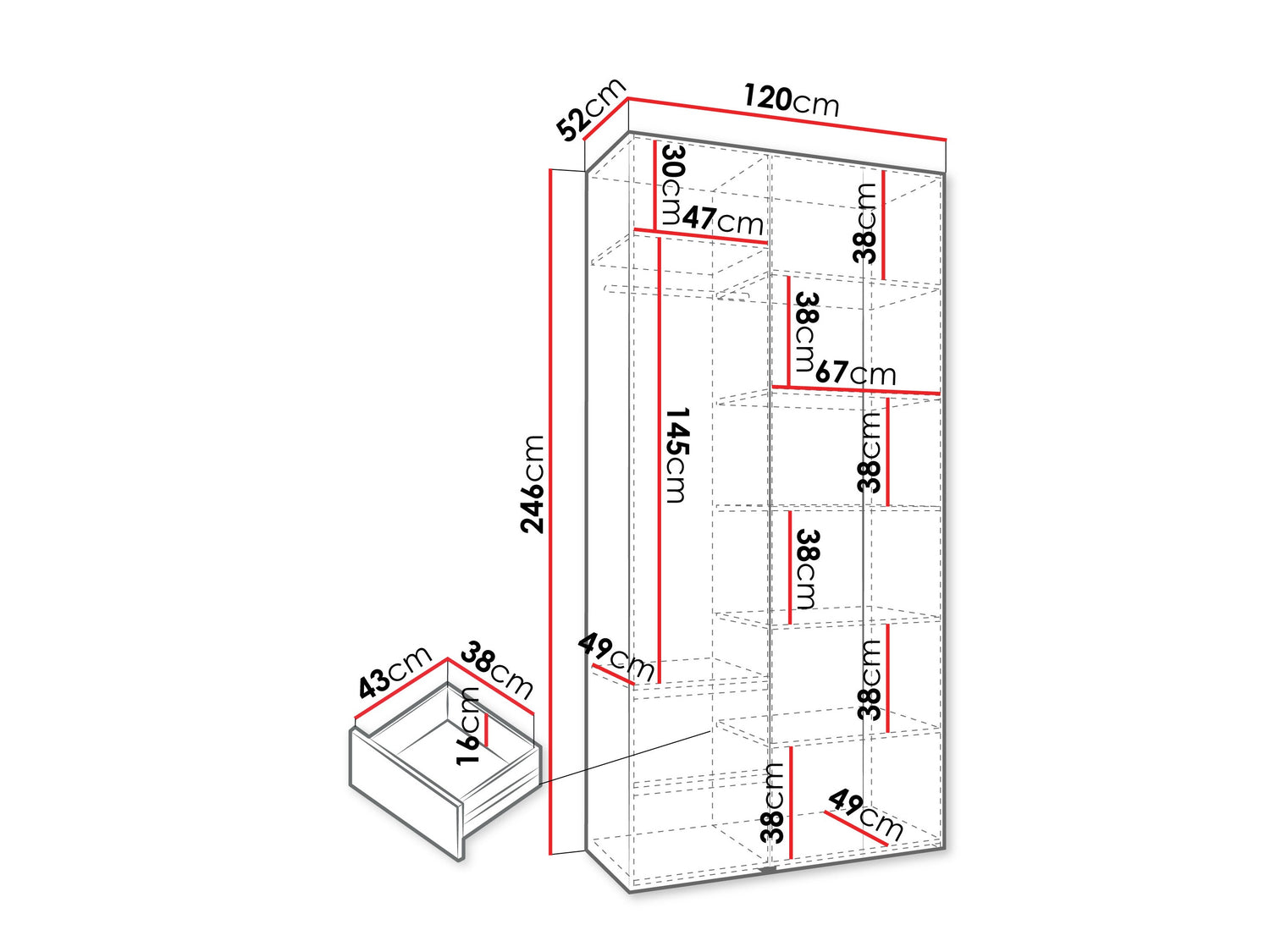 Gardróbszekrény Szafa COMO 1 120/130/140/150/160 (gł.42/52), Szín: Kasmír, Fogantyú színe: Fekete, Fiókok: Igen, Szélesség: 120 cm, Mélység: 52 cm