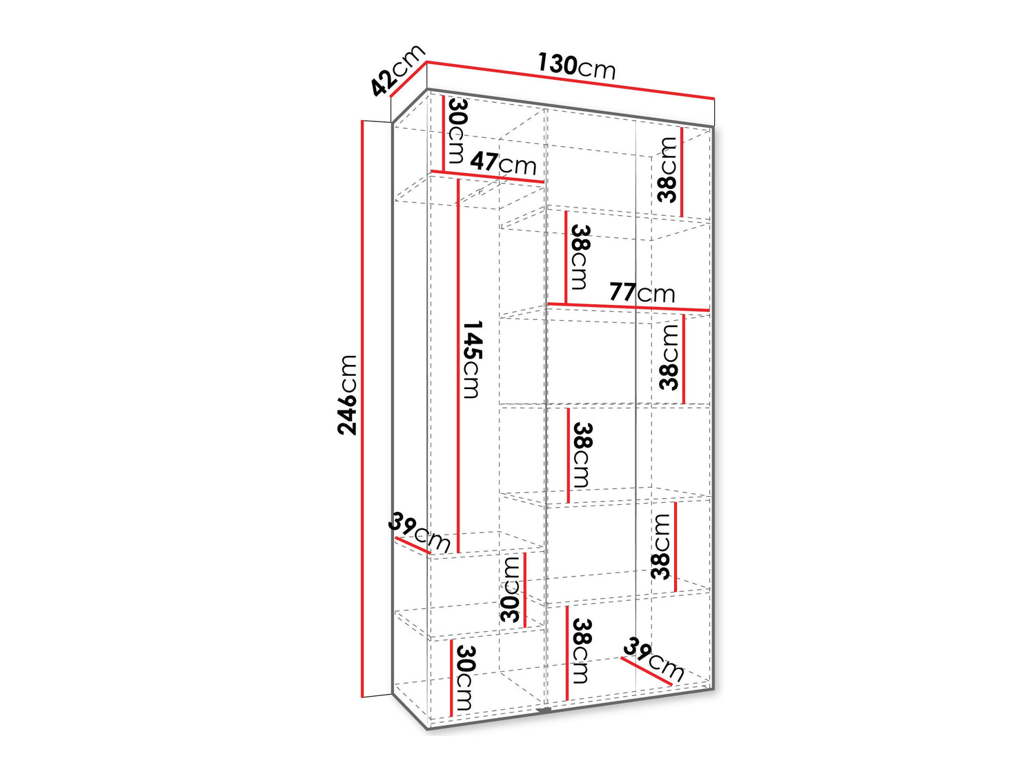 Gardróbszekrény Szafa COMO 1 130 (gł.40), Szín: Fehér, Fogantyú színe: Aranysárga, Fiókok: Nem, Szélesség: 130 cm, Mélység: 42 cm