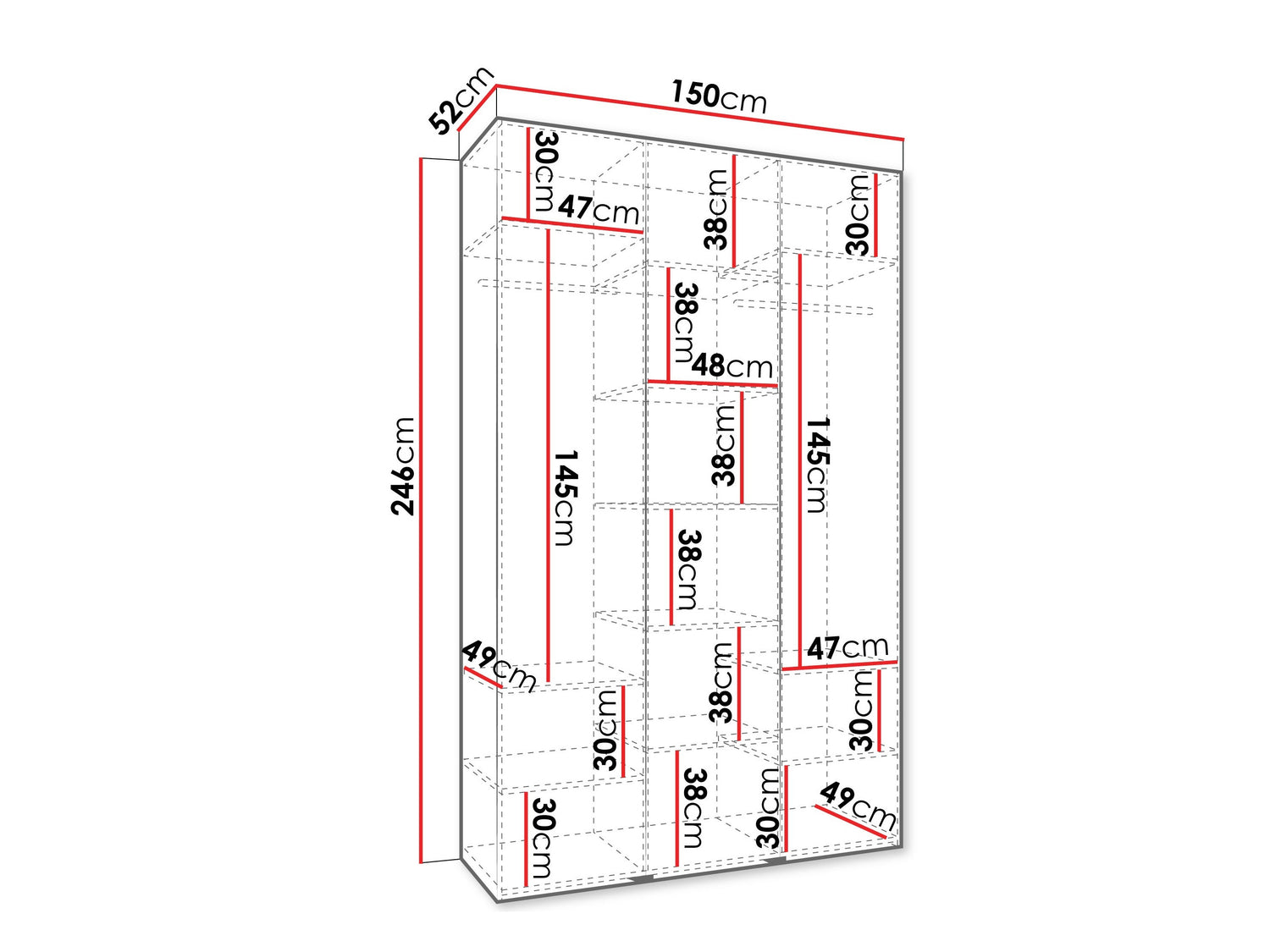 Gardróbszekrény Szafa COMO 1 150 (gł.50), Szín: Kasmír, Fogantyú színe: Fekete, Fiókok: Nem, Szélesség: 150 cm, Mélység: 52 cm