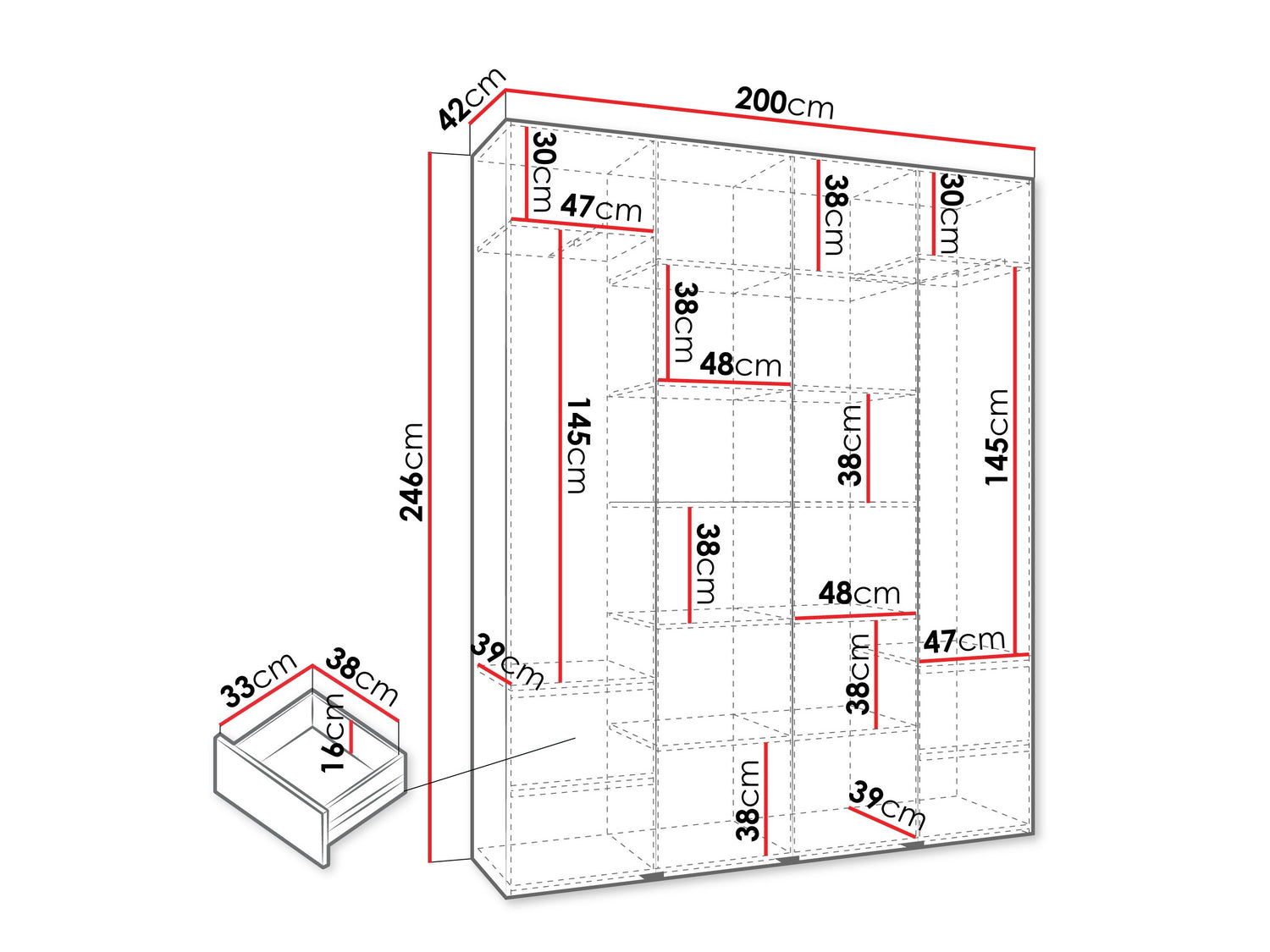 Gardróbszekrény Szafa COMO 1 170/180/190/200 (gł.42.52), Szín: Kasmír, Fogantyú színe: Aranysárga, Fiókok: Igen, Szélesség: 200 cm, Mélység: 42 cm