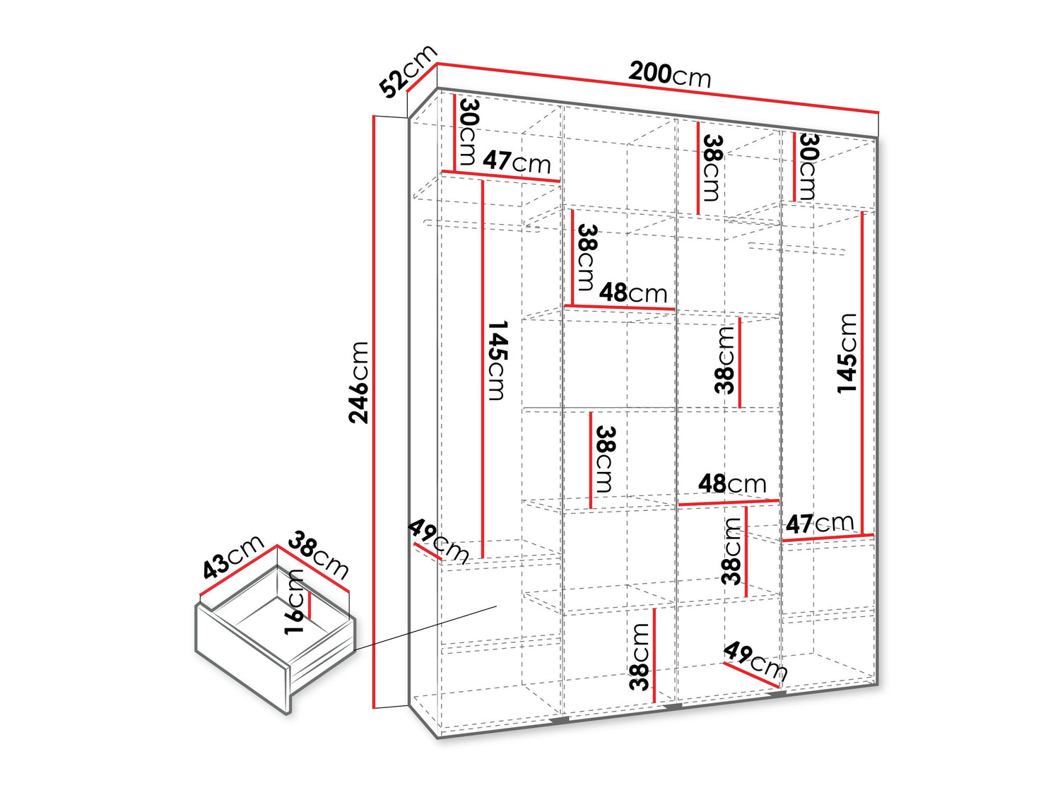 Gardróbszekrény Szafa COMO 1 170/180/190/200 (gł.42.52), Szín: Kasmír, Fogantyú színe: Aranysárga, Fiókok: Igen, Szélesség: 200 cm, Mélység: 52 cm