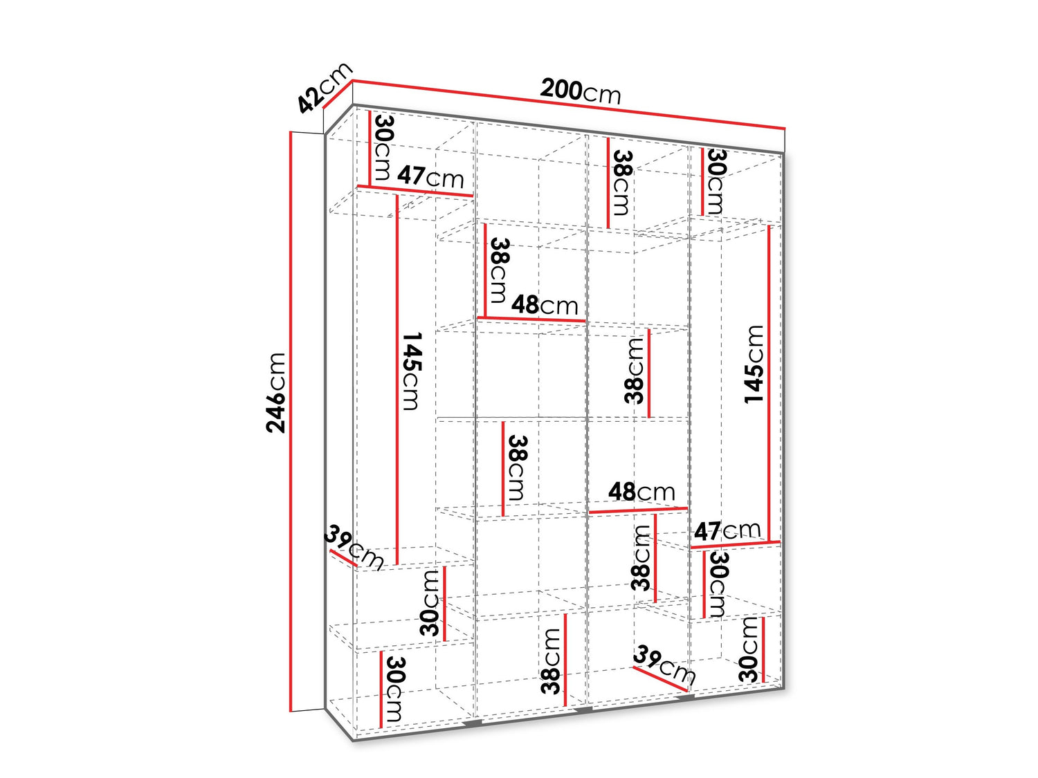 Gardróbszekrény Szafa COMO 1 200 (gł.40), Szín: Fehér, Fogantyú színe: Fekete, Fiókok: Nem, Szélesség: 200 cm, Mélység: 42 cm