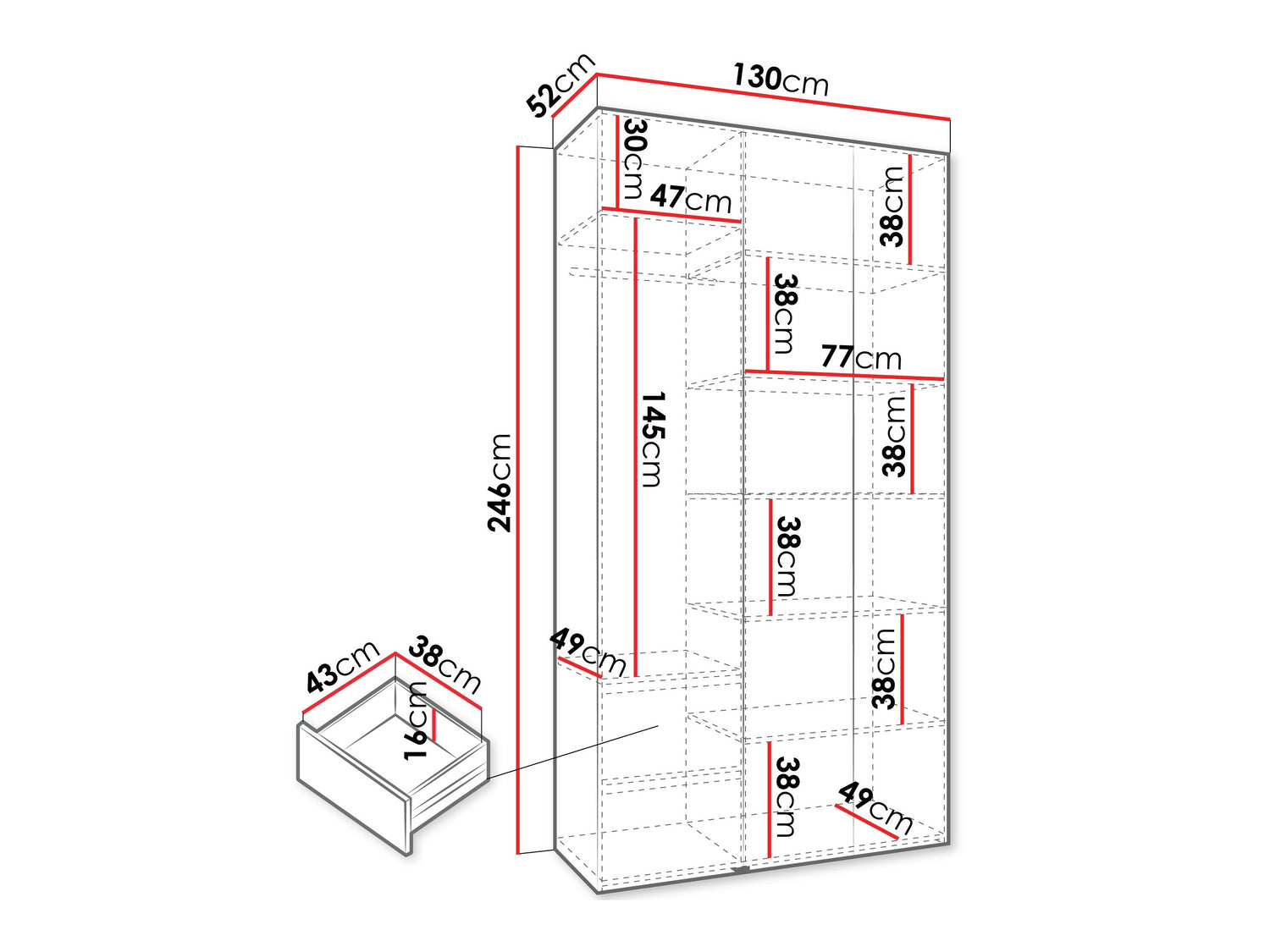 Gardróbszekrény Szafa COMO 2 120/130/140/150/160 (gł.40/50), Szín: Kasmír, Fogantyú színe: Fekete, Fiókok: Igen, Szélesség: 130 cm, Mélység: 52 cm
