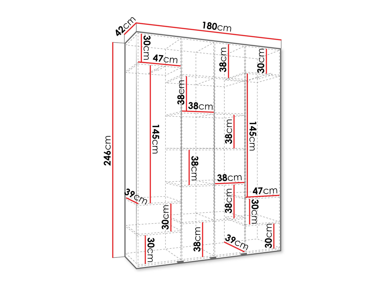 Gardróbszekrény Szafa COMO 2 170/180/190/200 (gł.40/50), Szín: Fehér, Fogantyú színe: Aranysárga, Fiókok: Nem, Szélesség: 180 cm, Mélység: 42 cm