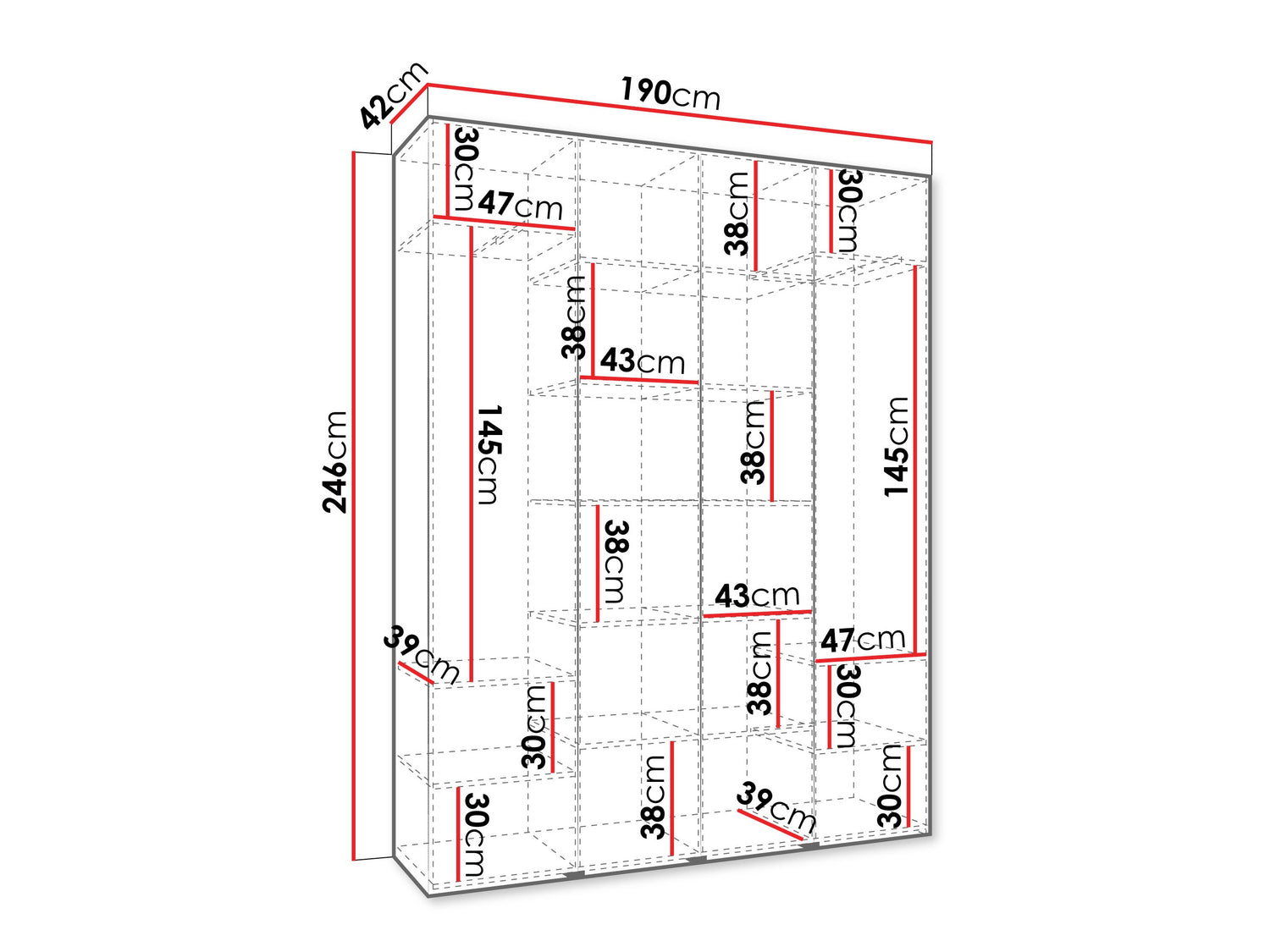 Gardróbszekrény Szafa COMO 2 170/180/190/200 (gł.40/50), Szín: Fehér, Fogantyú színe: Aranysárga, Fiókok: Nem, Szélesség: 190 cm, Mélység: 42 cm