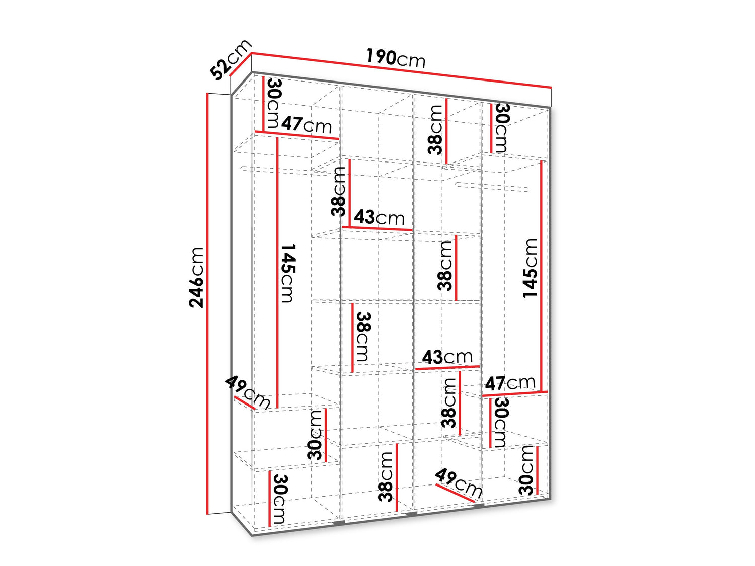 Gardróbszekrény Szafa COMO 2 170/180/190/200 (gł.40/50), Szín: Fehér, Fogantyú színe: Aranysárga, Fiókok: Nem, Szélesség: 190 cm, Mélység: 52 cm