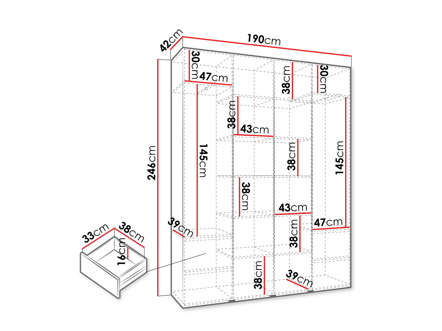 Gardróbszekrény Szafa COMO 2 170/180/190/200 (gł.40/50), Szín: Fehér, Fogantyú színe: Fekete, Fiókok: Igen, Szélesség: 190 cm, Mélység: 42 cm