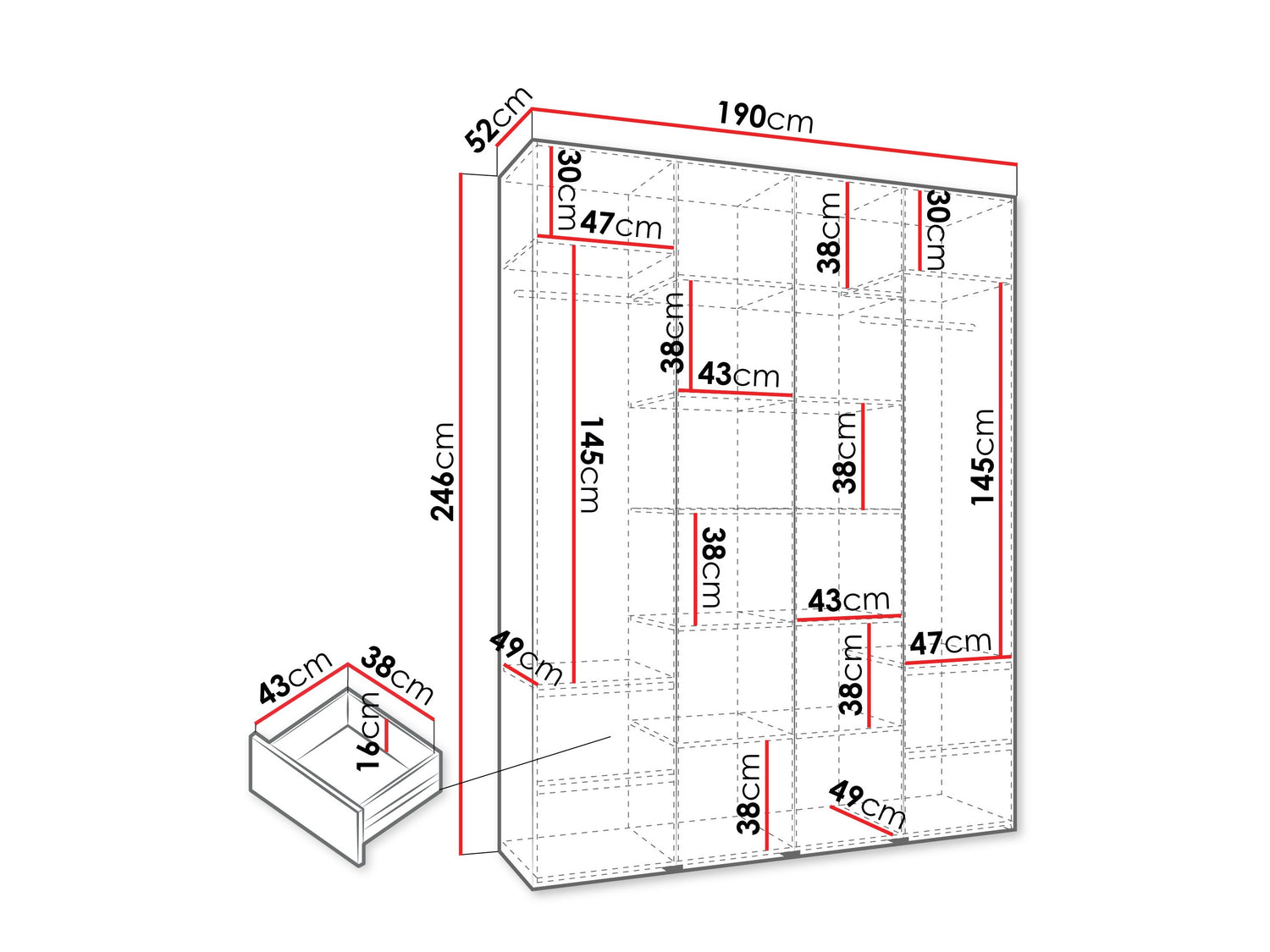 Gardróbszekrény Szafa COMO 2 170/180/190/200 (gł.40/50), Szín: Fehér, Fogantyú színe: Fekete, Fiókok: Igen, Szélesség: 190 cm, Mélység: 52 cm