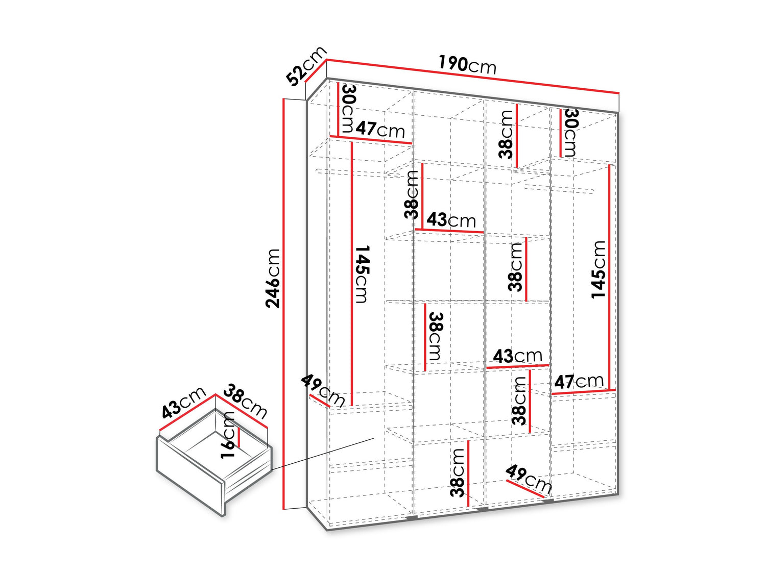 Gardróbszekrény Szafa COMO 2 170/180/190/200 (gł.40/50), Szín: Kasmír, Fogantyú színe: Aranysárga, Fiókok: Igen, Szélesség: 190 cm, Mélység: 52 cm