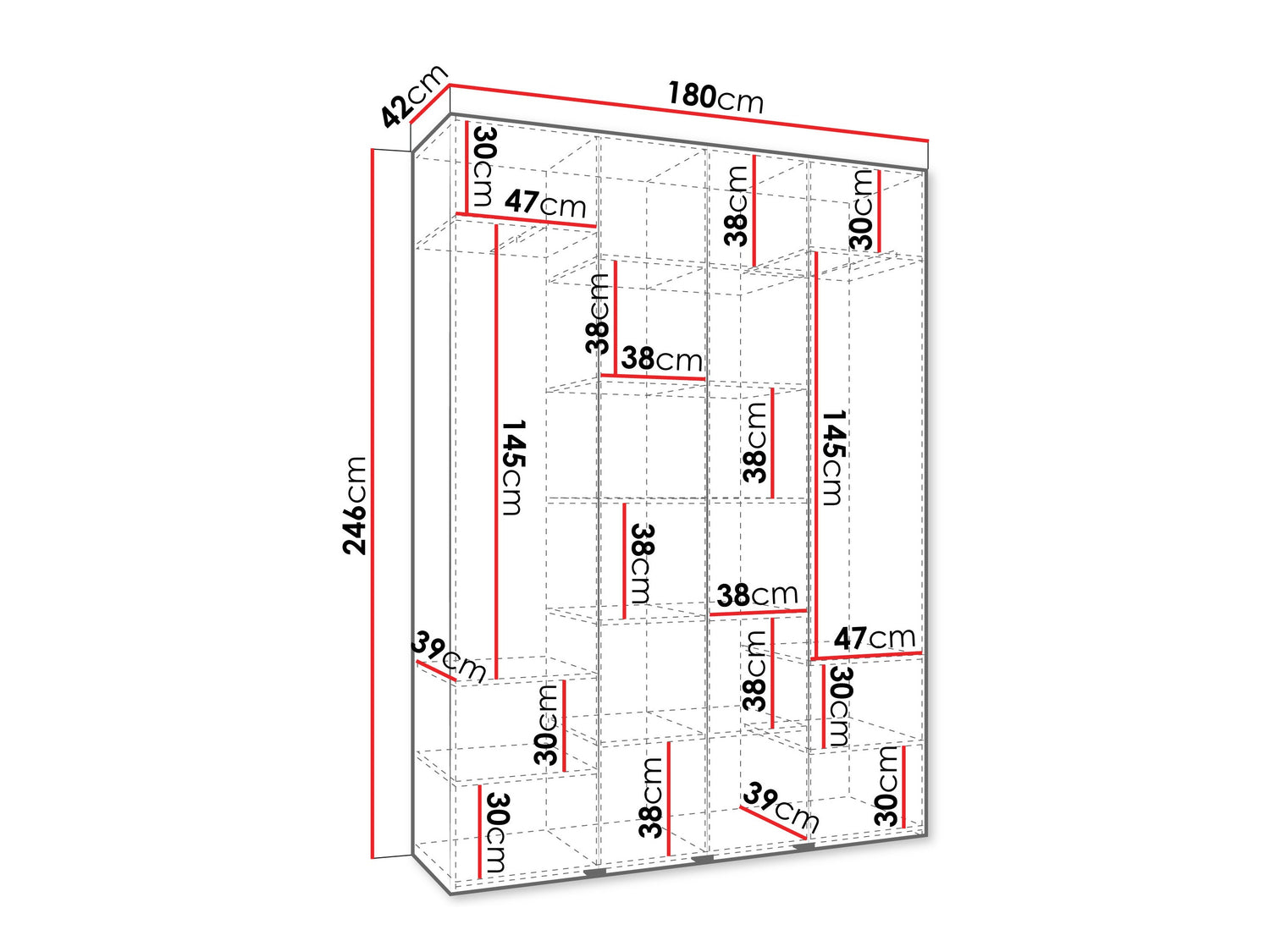 Gardróbszekrény Szafa COMO 2 170/180/190/200 (gł.40/50), Szín: Kasmír, Fogantyú színe: Aranysárga, Fiókok: Nem, Szélesség: 180 cm, Mélység: 42 cm