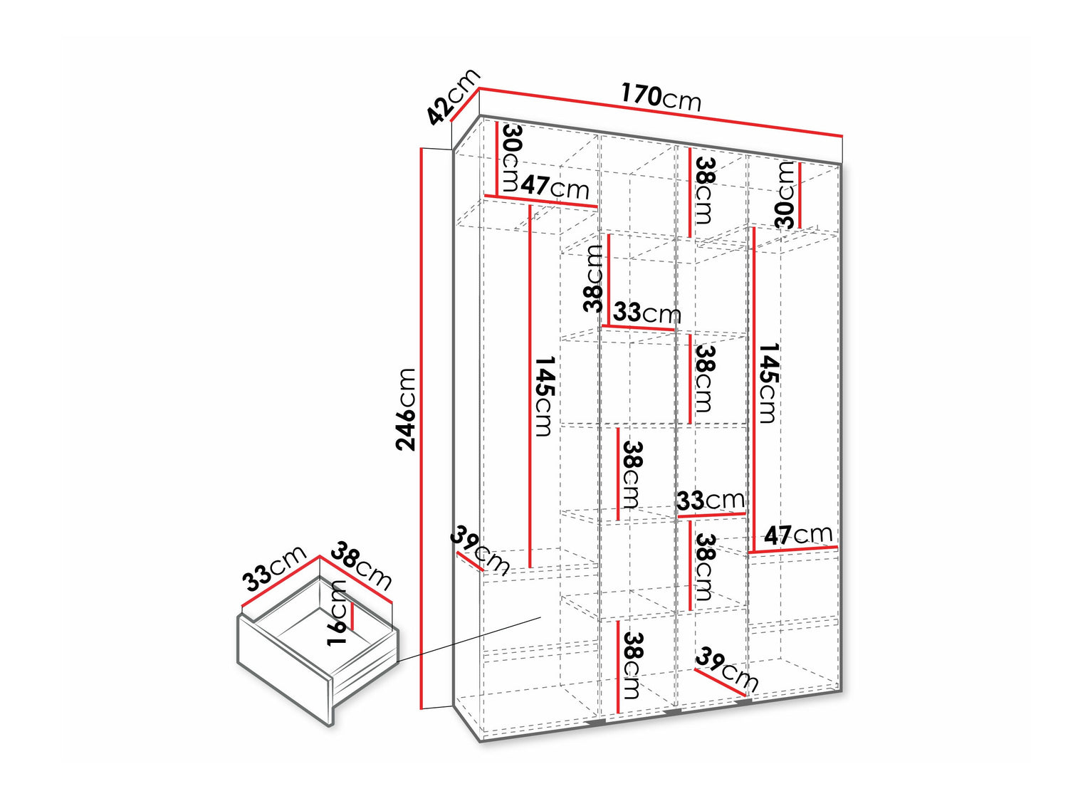 Gardróbszekrény Szafa COMO 2 170/180/190/200 (gł.40/50), Szín: Kasmír, Fogantyú színe: Fekete, Fiókok: Igen, Szélesség: 170 cm, Mélység: 42 cm