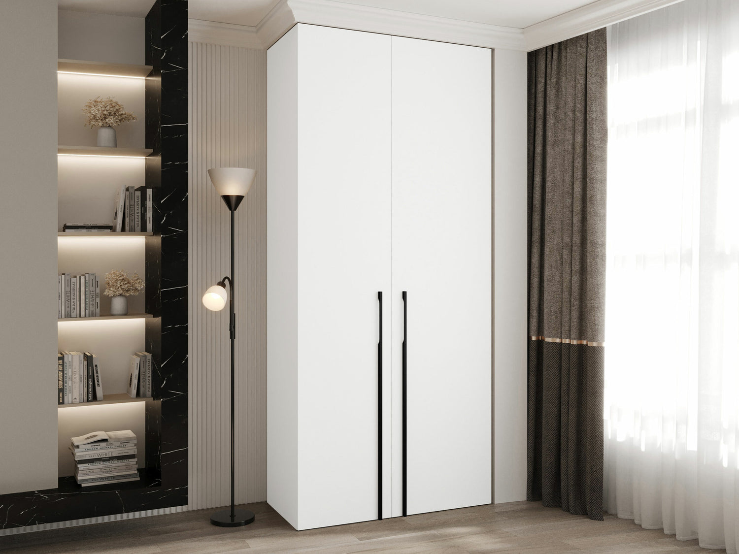 Gardróbszekrény Szafa COMO 3 100/110 (gł.40/50), Szín: Fehér, Fogantyú színe: Fekete, Fiókok: Nem, Szélesség: 110 cm, Mélység: 42 cm
