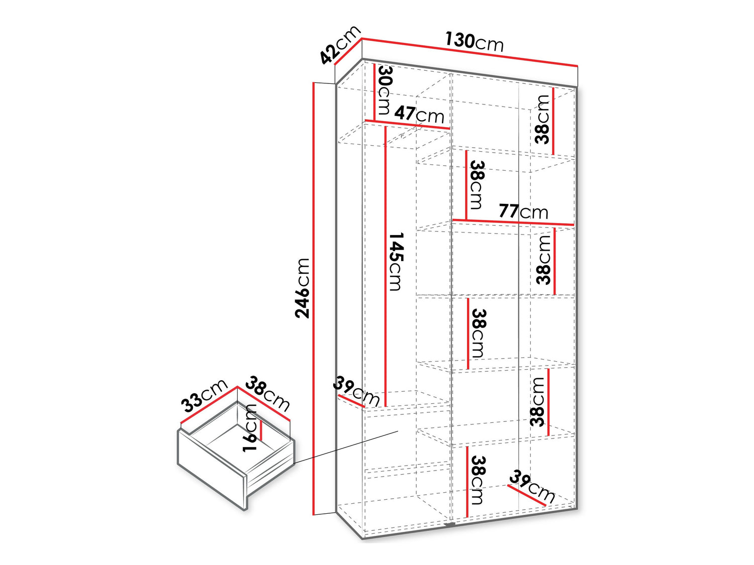 Gardróbszekrény Szafa COMO 3 120/130/140/150/160 (gł.40/50), Szín: Fehér, Fogantyú színe: Aranysárga, Szélesség: 130 cm, Mélység: 42 cm, Fiókok: Igen
