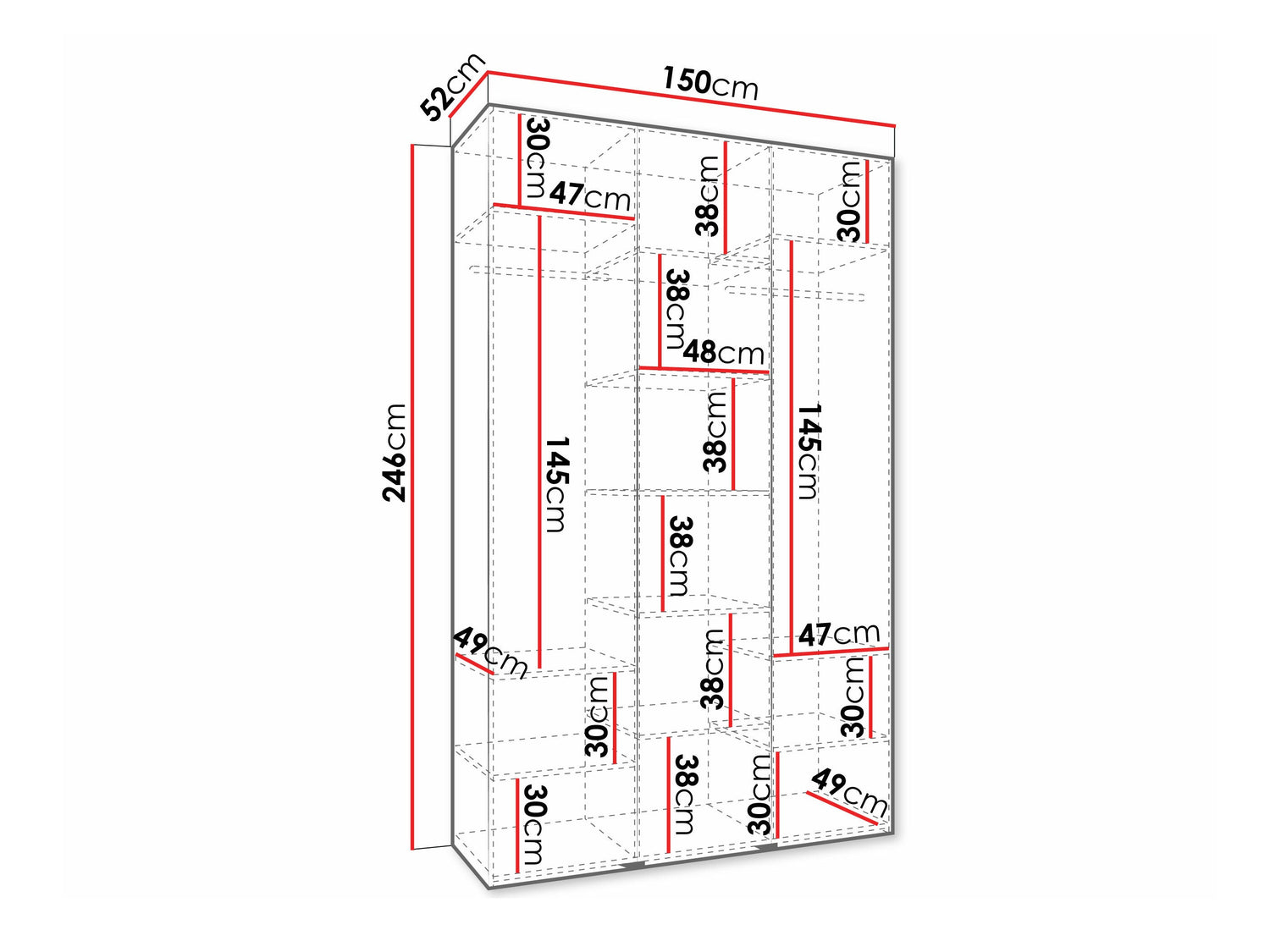 Gardróbszekrény Szafa COMO 3 120/130/140/150/160 (gł.40/50), Szín: Fehér, Fogantyú színe: Aranysárga, Szélesség: 150 cm, Mélység: 52 cm, Fiókok: Nem
