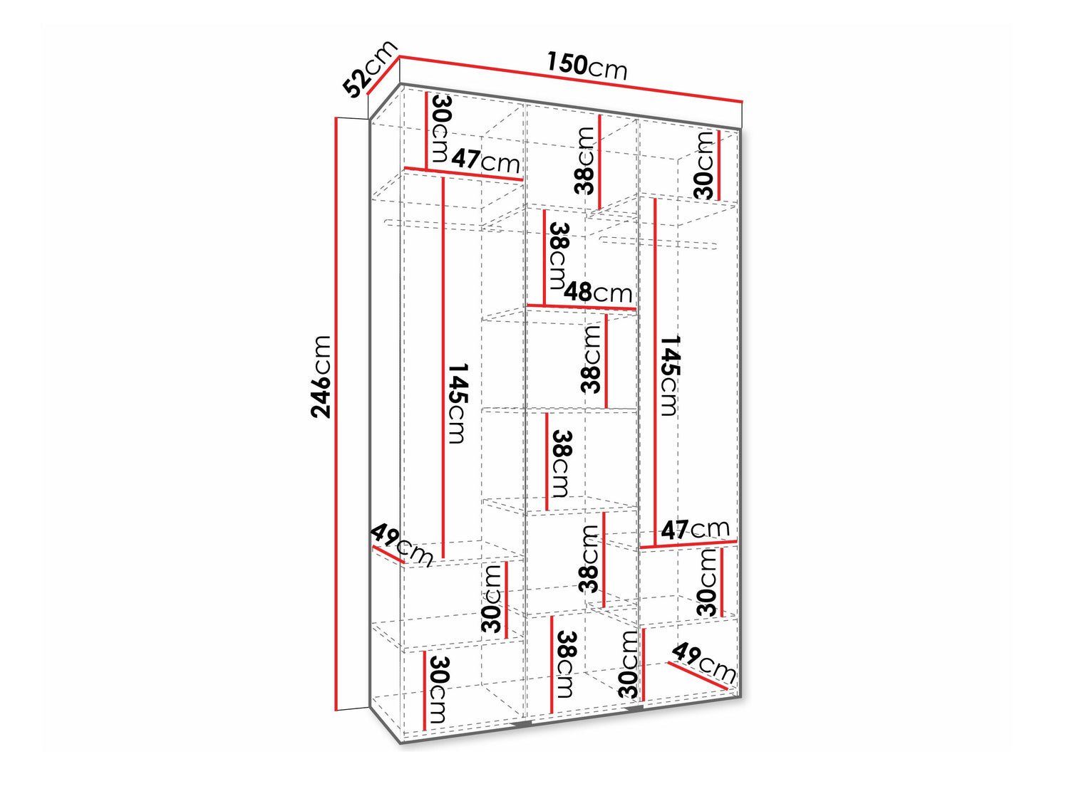 Gardróbszekrény Szafa COMO 3 120/130/140/150/160 (gł.40/50), Szín: Kasmír, Fogantyú színe: Aranysárga, Szélesség: 150 cm, Mélység: 52 cm, Fiókok: Nem