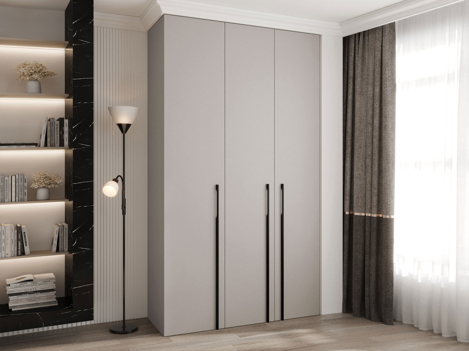Gardróbszekrény Szafa COMO 3 120/130/140/150/160 (gł.40/50), Szín: Kasmír, Fogantyú színe: Fekete, Szélesség: 140 cm, Mélység: 42 cm, Fiókok: Igen