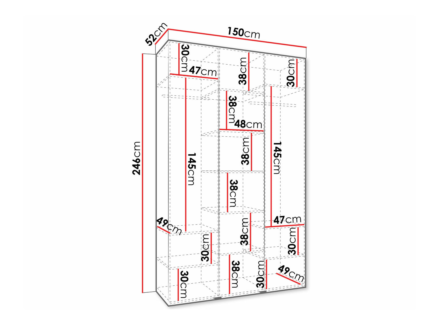 Gardróbszekrény Szafa COMO 3 120/130/140/150/160 (gł.40/50), Szín: Kasmír, Fogantyú színe: Fekete, Szélesség: 150 cm, Mélység: 52 cm, Fiókok: Nem