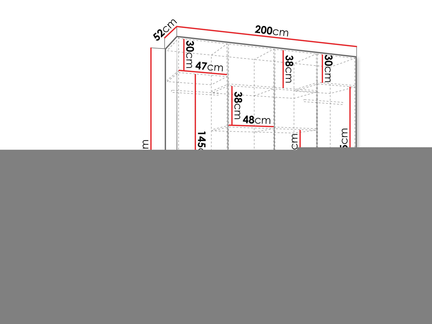 Gardróbszekrény Szafa COMO 3 170/180/190/200 (gł.40/50), Szín: Fehér, Fogantyú színe: Aranysárga, Fiókok: Igen, Szélesség: 200 cm, Mélység: 52 cm