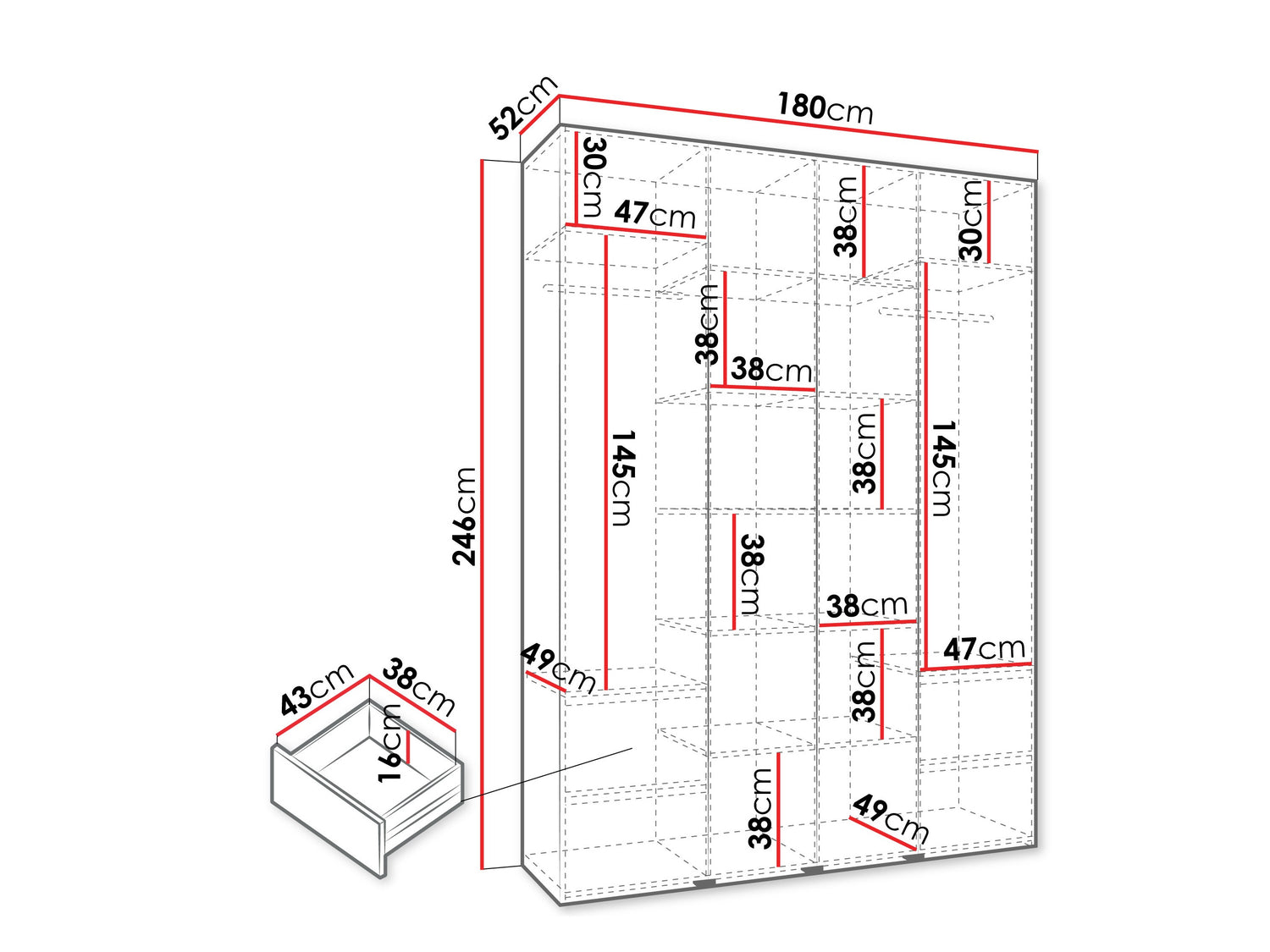 Gardróbszekrény Szafa COMO 3 170/180/190/200 (gł.40/50), Szín: Fehér, Fogantyú színe: Fekete, Fiókok: Igen, Szélesség: 180 cm, Mélység: 52 cm
