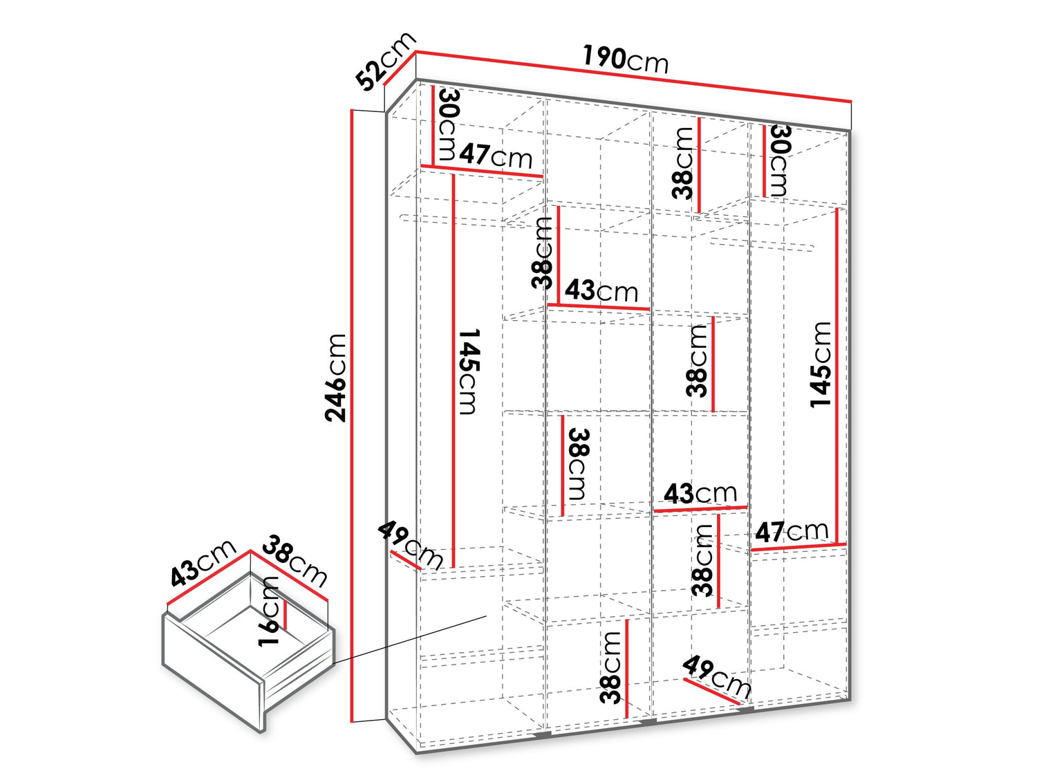Gardróbszekrény Szafa COMO 3 170/180/190/200 (gł.40/50), Szín: Kasmír, Fogantyú színe: Aranysárga, Fiókok: Igen, Szélesség: 190 cm, Mélység: 52 cm
