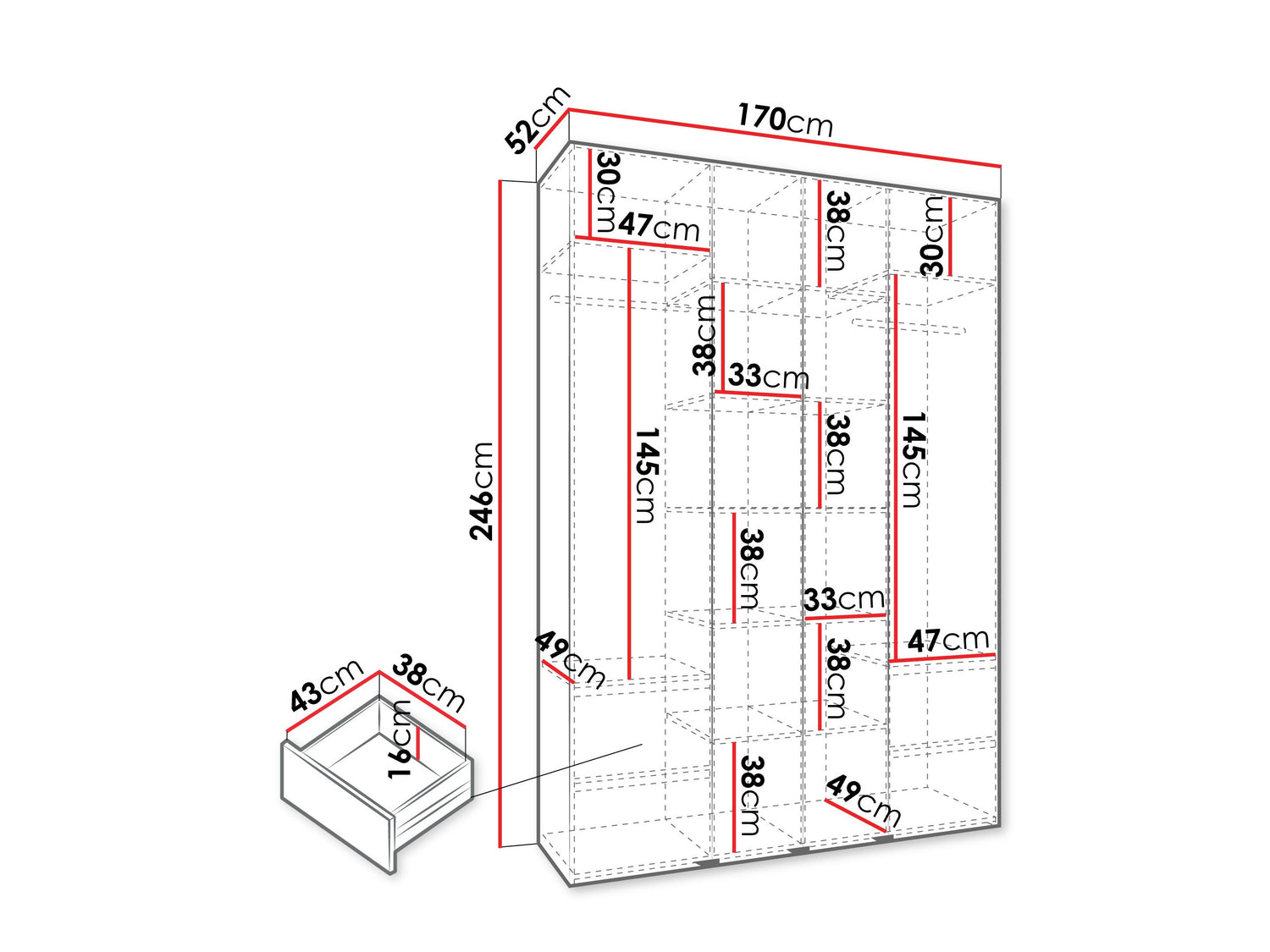Gardróbszekrény Szafa COMO 3 170/180/190/200 (gł.40/50), Szín: Kasmír, Fogantyú színe: Fekete, Fiókok: Igen, Szélesség: 170 cm, Mélység: 52 cm