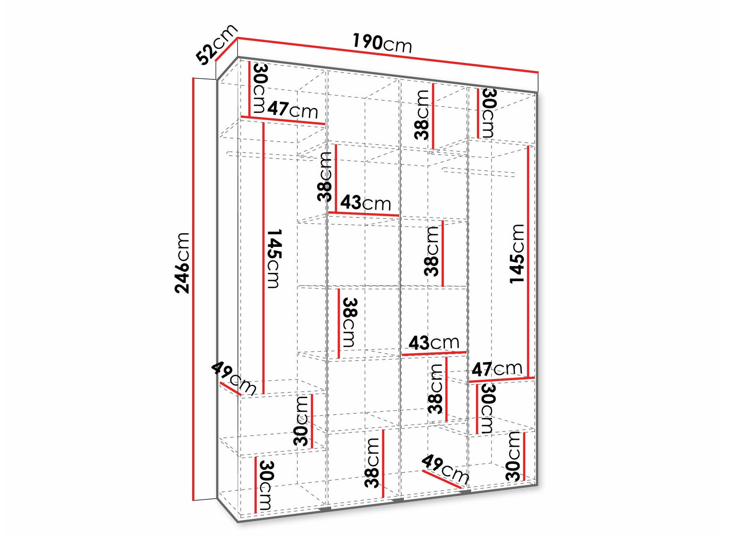 Gardróbszekrény Szafa COMO 3 170/180/190/200 (gł.40/50), Szín: Kasmír, Fogantyú színe: Fekete, Fiókok: Nem, Szélesség: 190 cm, Mélység: 52 cm