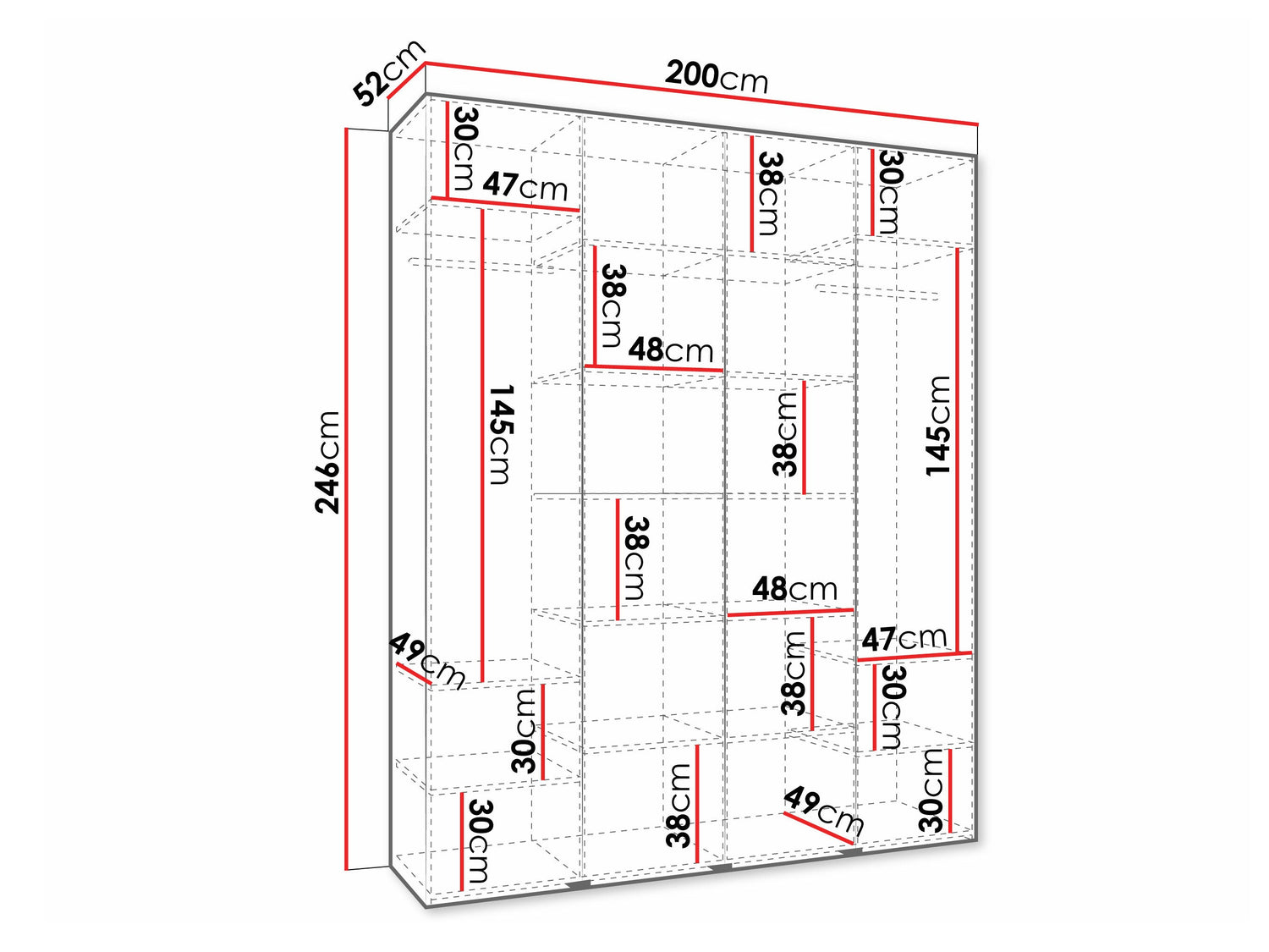 Gardróbszekrény Szafa COMO 3 170/180/190/200 (gł.40/50), Szín: Kasmír, Fogantyú színe: Fekete, Fiókok: Nem, Szélesség: 200 cm, Mélység: 52 cm