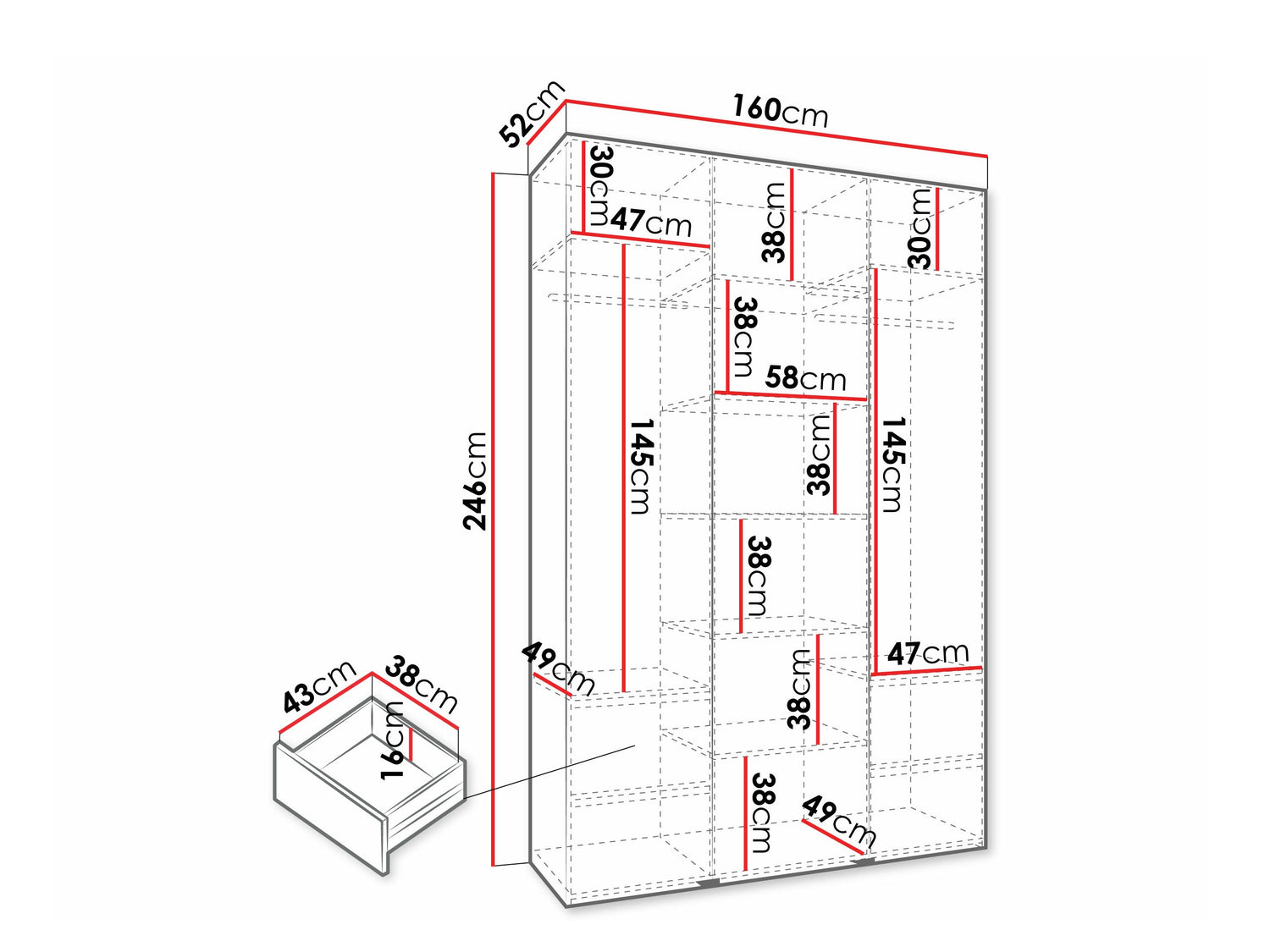 Gardróbszekrény Szafa COMO 4 120/130/140/150/160 (gł.40/50), Szín: Fehér, Fogantyú színe: Aranysárga, Fiókok: Igen, Szélesség: 160 cm, Mélység: 52 cm