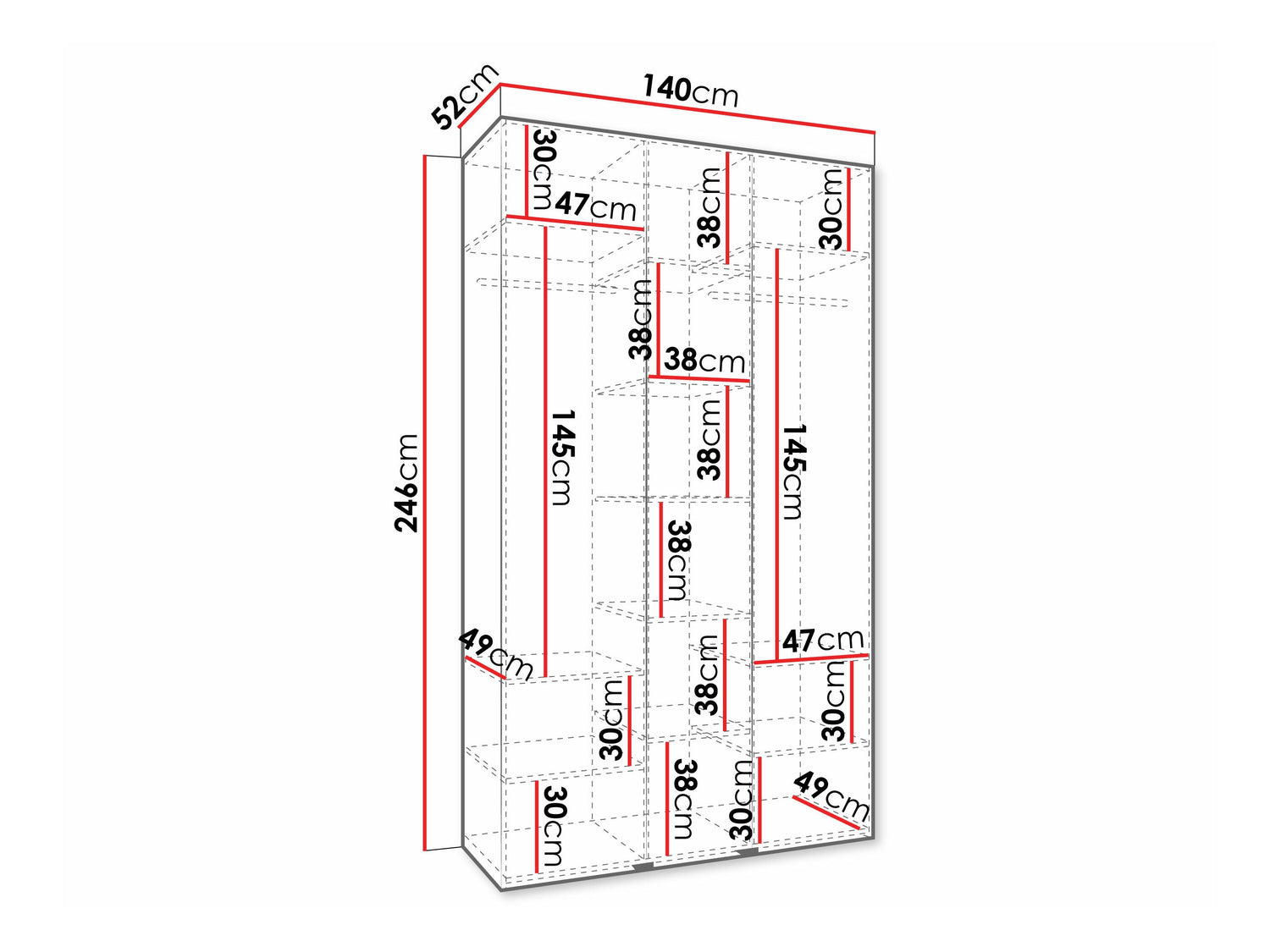 Gardróbszekrény Szafa COMO 4 120/130/140/150/160 (gł.40/50), Szín: Fehér, Fogantyú színe: Aranysárga, Fiókok: Nem, Szélesség: 140 cm, Mélység: 52 cm