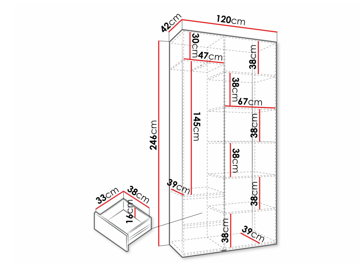 Gardróbszekrény Szafa COMO 4 120/130/140/150/160 (gł.40/50), Szín: Fehér, Fogantyú színe: Fekete, Fiókok: Igen, Szélesség: 120 cm, Mélység: 42 cm
