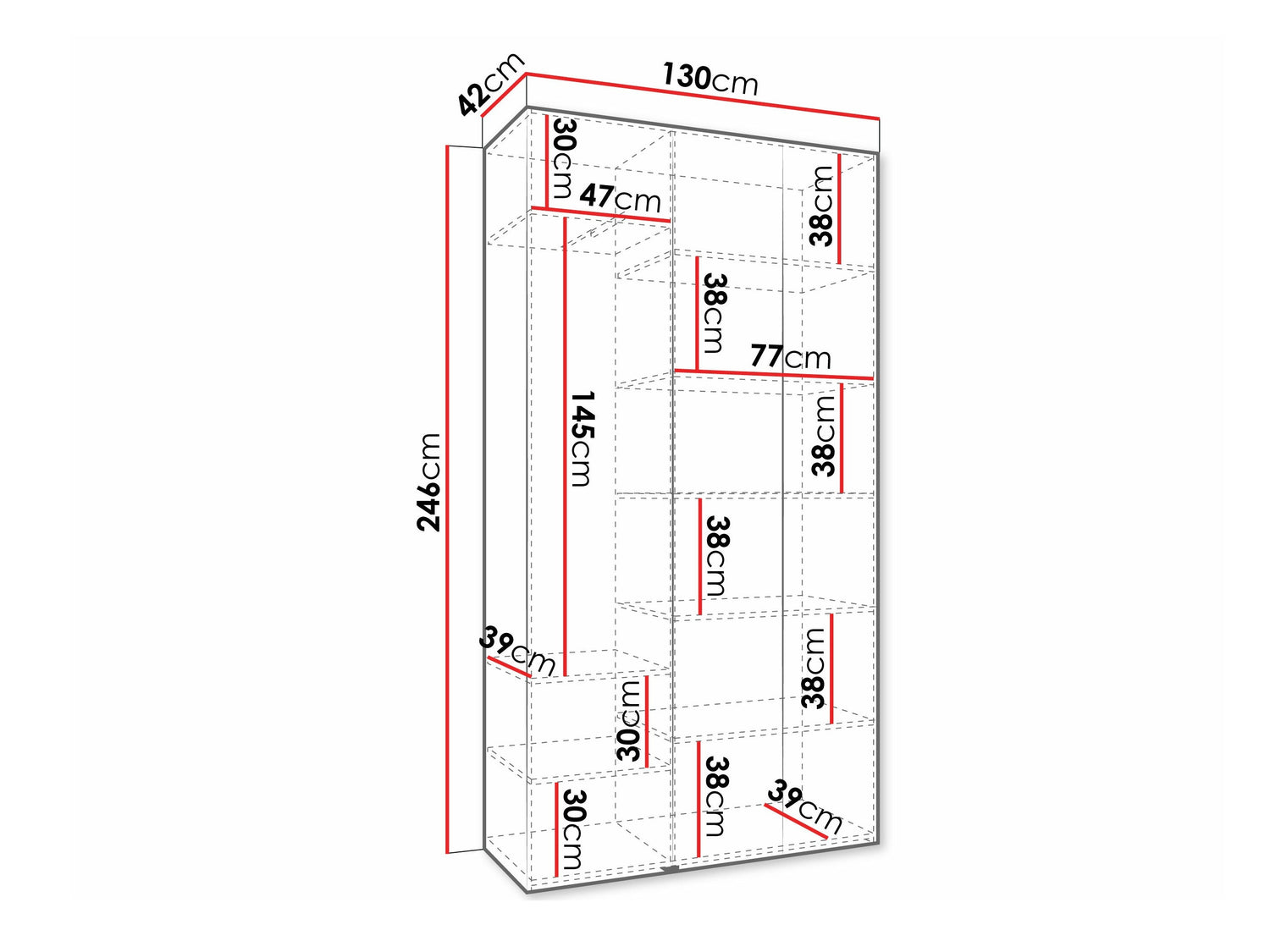 Gardróbszekrény Szafa COMO 4 120/130/140/150/160 (gł.40/50), Szín: Fehér, Fogantyú színe: Fekete, Fiókok: Nem, Szélesség: 130 cm, Mélység: 42 cm