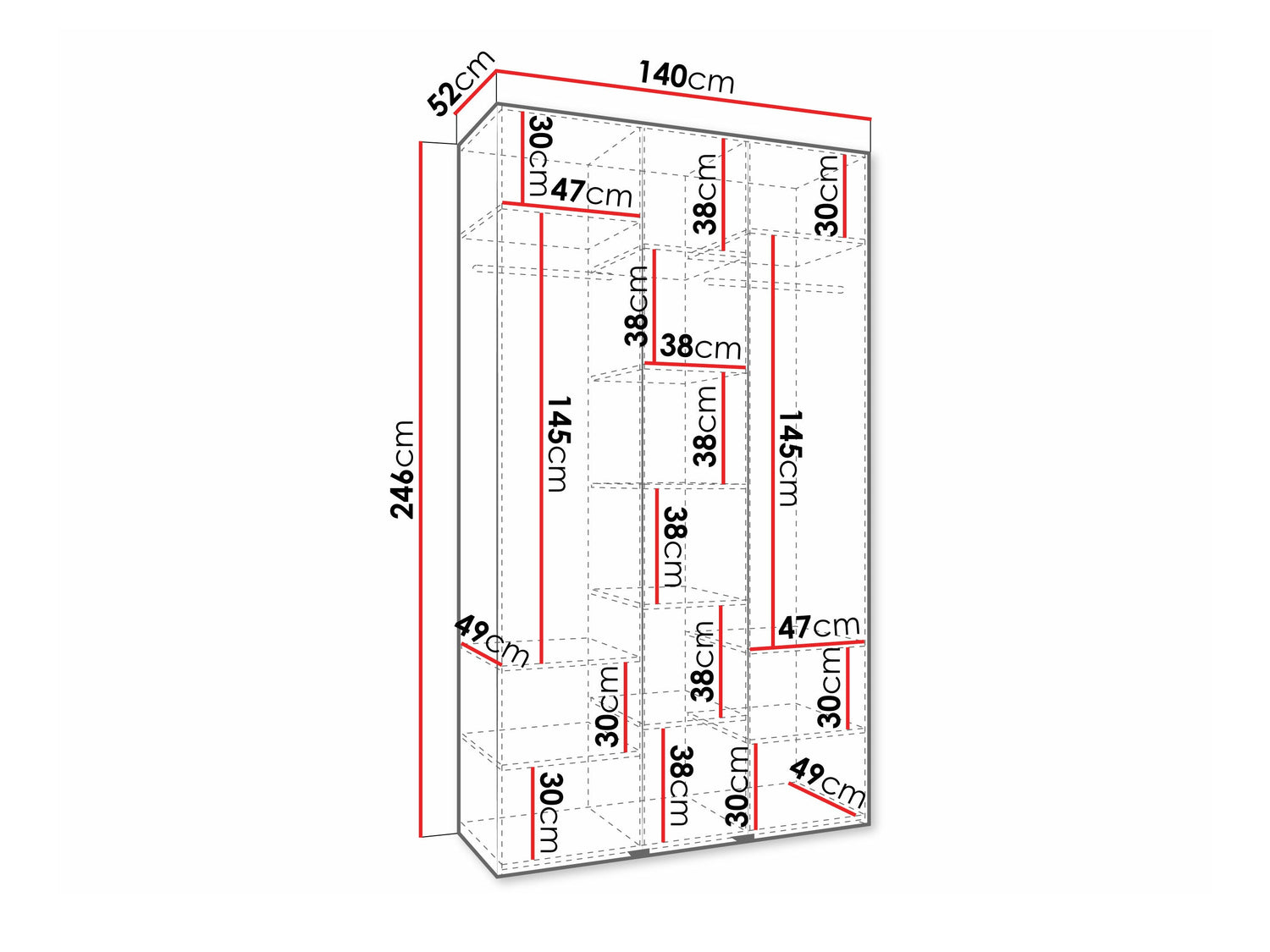 Gardróbszekrény Szafa COMO 4 120/130/140/150/160 (gł.40/50), Szín: Kasmír, Fogantyú színe: Aranysárga, Fiókok: Nem, Szélesség: 140 cm, Mélység: 52 cm