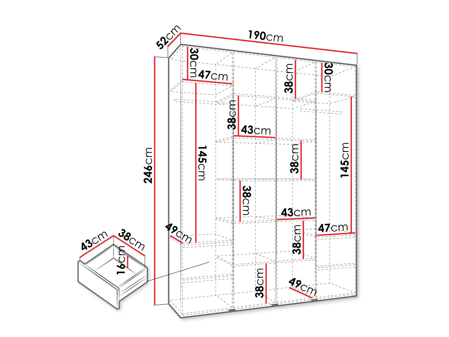 Gardróbszekrény Szafa COMO 4 170/180/190/200 (gł.40/50), Szín: Fehér, Fogantyú színe: Aranysárga, Fiókok: Igen, Szélesség: 190 cm, Mélység: 52 cm