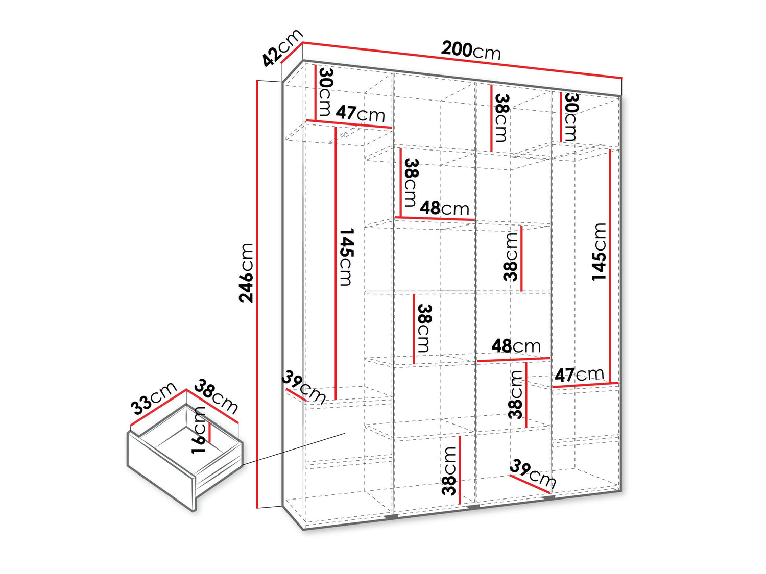 Gardróbszekrény Szafa COMO 4 170/180/190/200 (gł.40/50), Szín: Fehér, Fogantyú színe: Aranysárga, Fiókok: Igen, Szélesség: 200 cm, Mélység: 42 cm