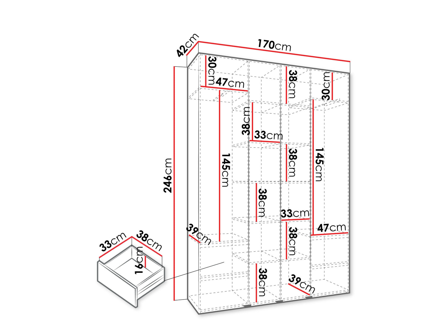 Gardróbszekrény Szafa COMO 4 170/180/190/200 (gł.40/50), Szín: Fehér, Fogantyú színe: Fekete, Fiókok: Igen, Szélesség: 170 cm, Mélység: 42 cm