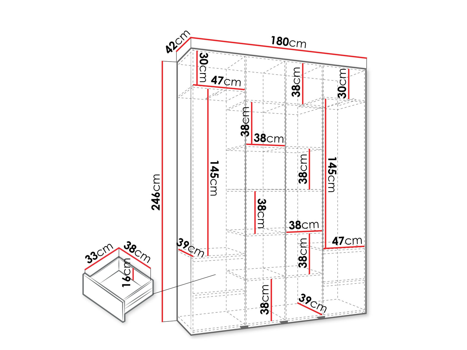 Gardróbszekrény Szafa COMO 4 170/180/190/200 (gł.40/50), Szín: Fehér, Fogantyú színe: Fekete, Fiókok: Igen, Szélesség: 180 cm, Mélység: 42 cm