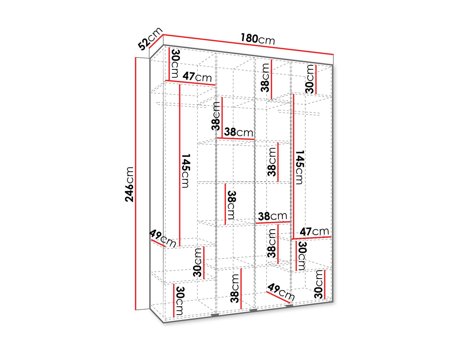 Gardróbszekrény Szafa COMO 4 170/180/190/200 (gł.40/50), Szín: Fehér, Fogantyú színe: Fekete, Fiókok: Nem, Szélesség: 180 cm, Mélység: 52 cm
