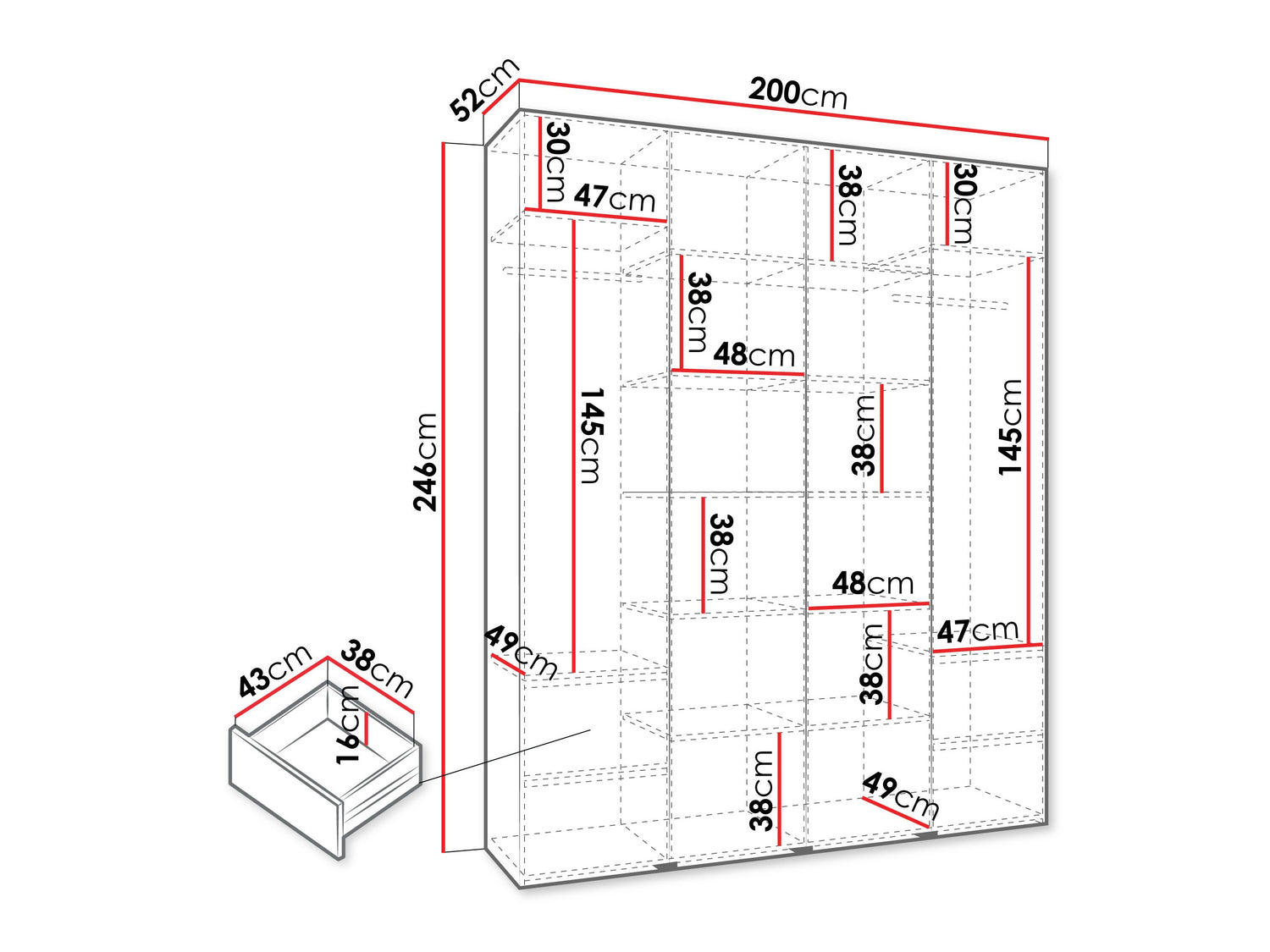 Gardróbszekrény Szafa COMO 4 170/180/190/200 (gł.40/50), Szín: Kasmír, Fogantyú színe: Aranysárga, Fiókok: Igen, Szélesség: 200 cm, Mélység: 52 cm