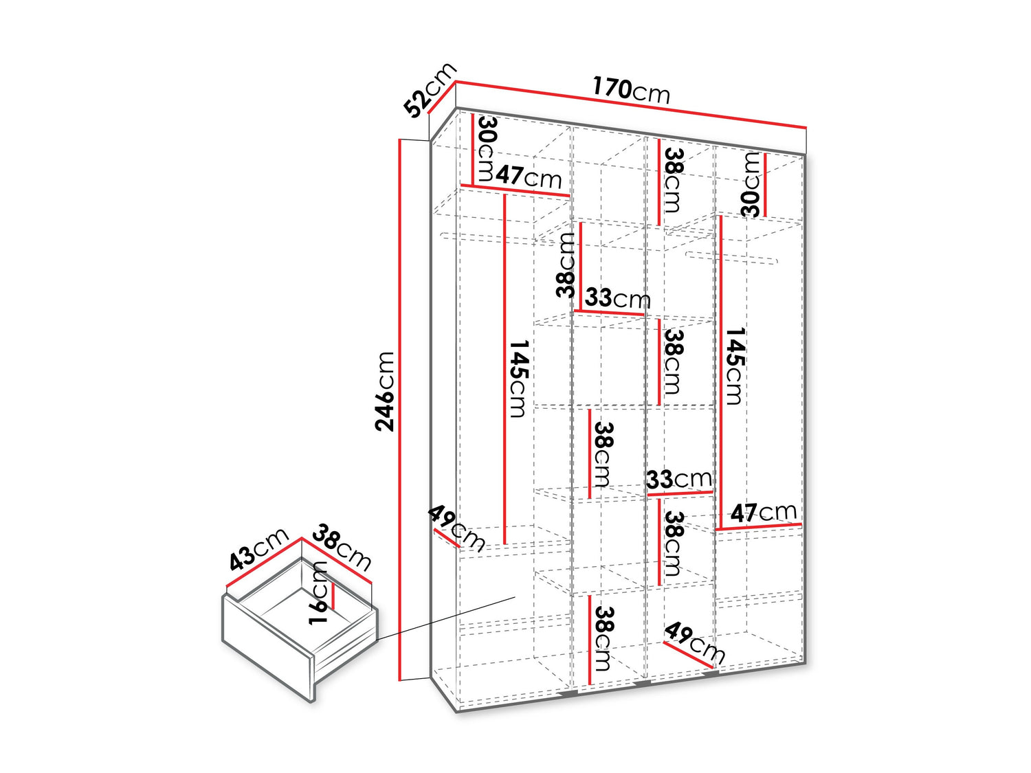 Gardróbszekrény Szafa COMO 4 170/180/190/200 (gł.40/50), Szín: Kasmír, Fogantyú színe: Fekete, Fiókok: Igen, Szélesség: 170 cm, Mélység: 52 cm