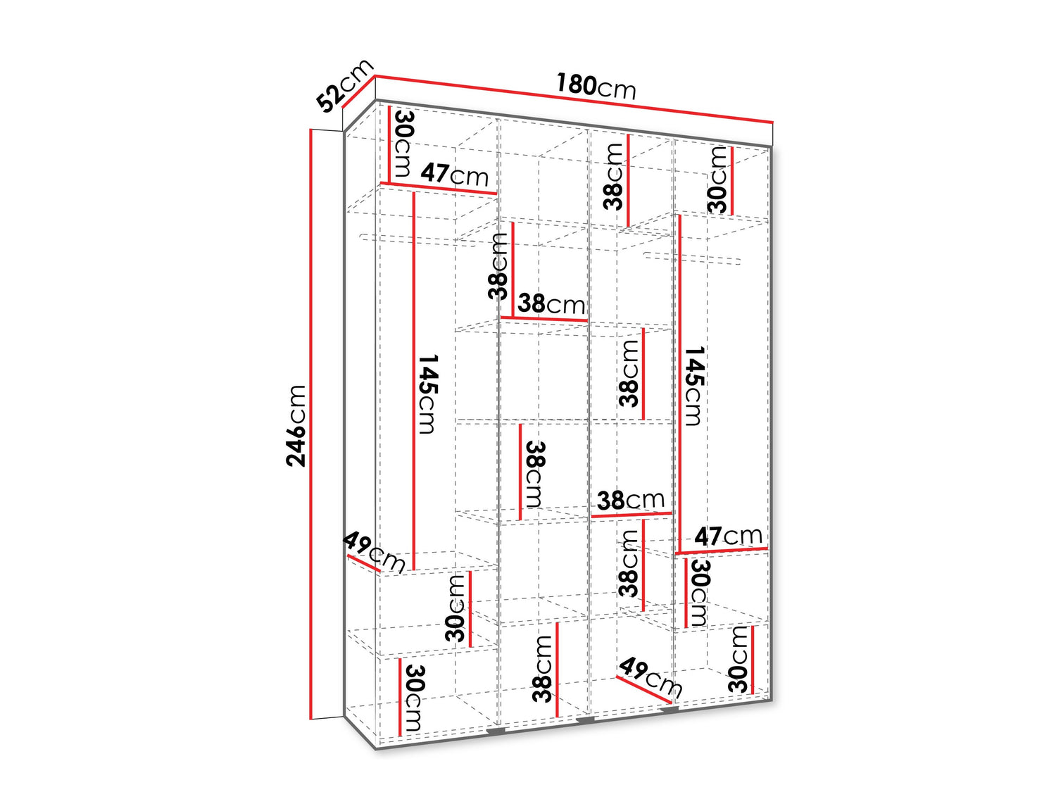 Gardróbszekrény Szafa COMO 4 170/180/190/200 (gł.40/50), Szín: Kasmír, Fogantyú színe: Fekete, Fiókok: Nem, Szélesség: 180 cm, Mélység: 52 cm