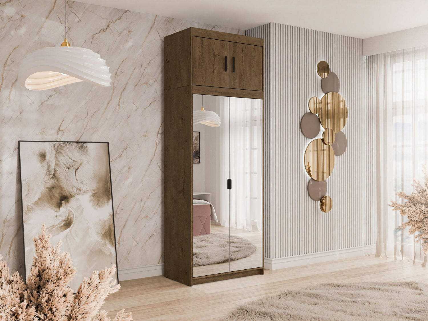 Gardróbszekrény Szafa ELENA 2D z lustrem + nadstawka, Szín: Lefkas tölgy