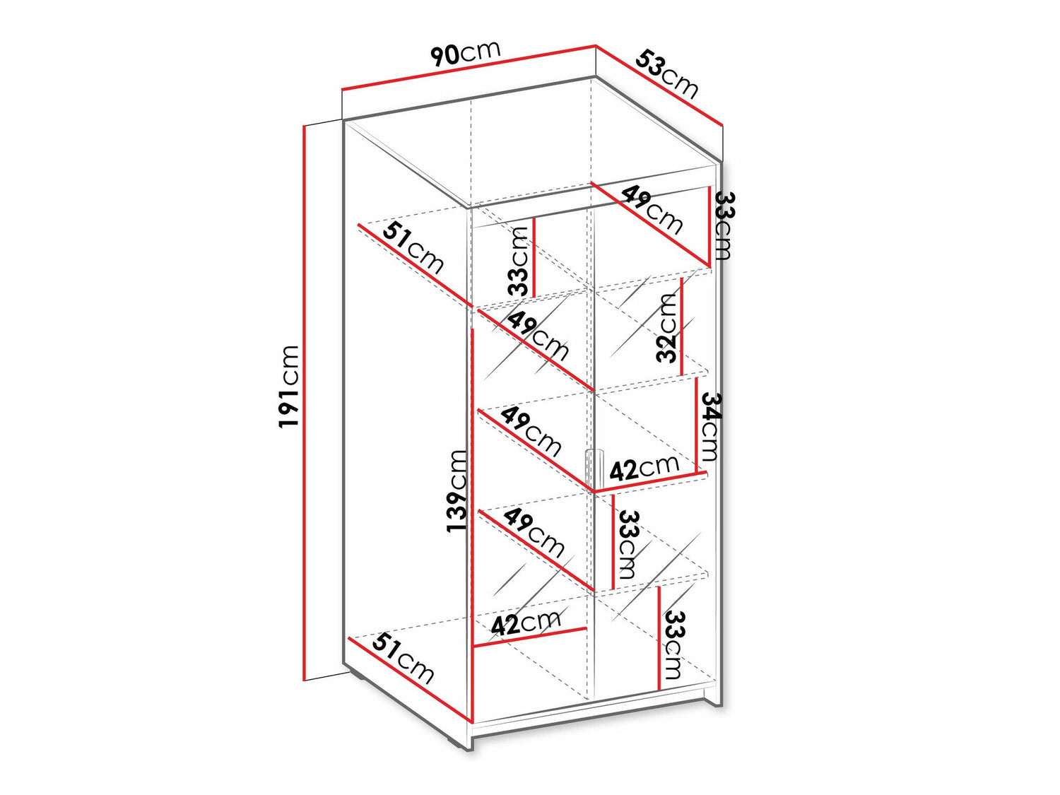 Gardróbszekrény Szafa ELENA 2D z lustrem, Szín: Fehér