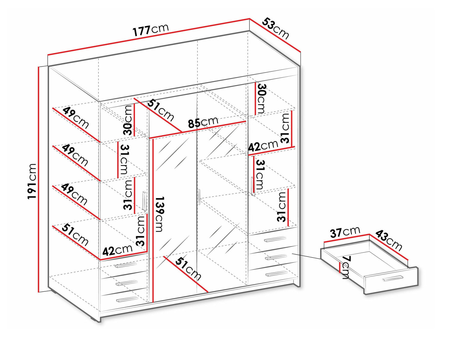 Gardróbszekrény Szafa ELENA 4D6S z lustrem, Szín: Sonoma tölgy