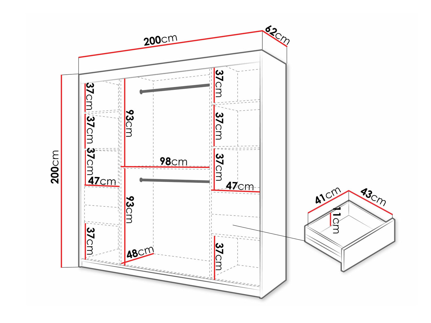 Gardróbszekrény Szafa FLUTES 3, Szín: Fehér, Fiókok: Igen, Szélesség: 200 cm, Led világítás: Igen
