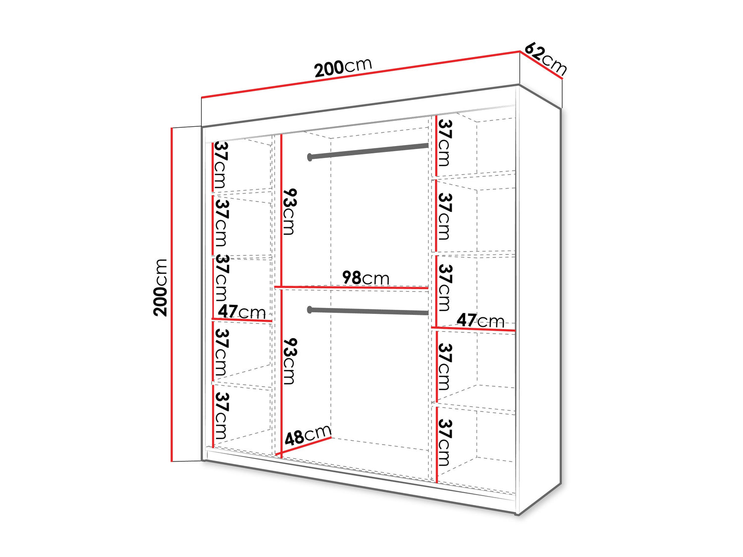 Gardróbszekrény Szafa FLUTES 3, Szín: Fehér, Fiókok: Nem, Szélesség: 200 cm, Led világítás: Nem