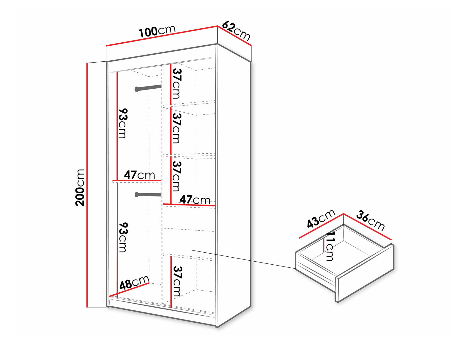 Gardróbszekrény Szafa FLUTES 3, Szín: Fekete, Fiókok: Igen, Szélesség: 100 cm, Led világítás: Nem