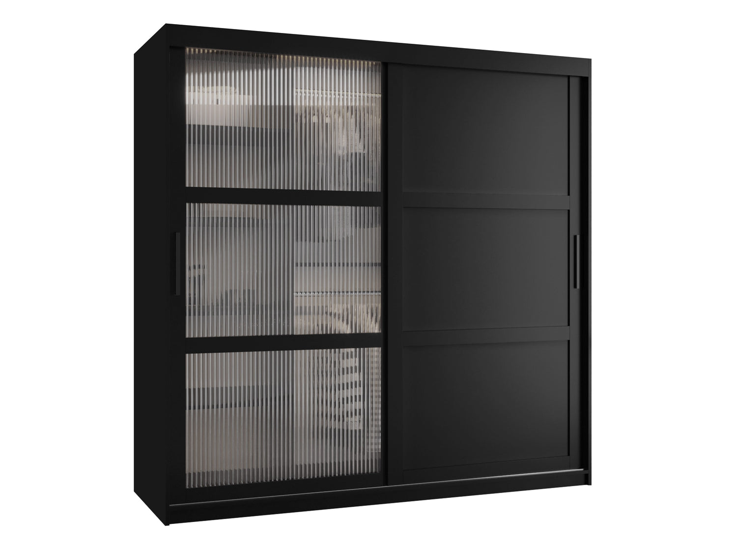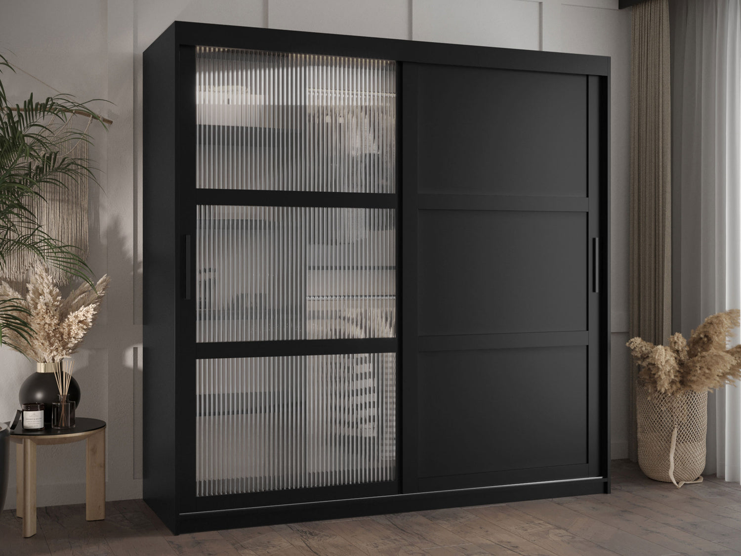 Gardróbszekrény Szafa FLUTES 3, Szín: Fekete, Fiókok: Igen, Szélesség: 180 cm, Led világítás: Nem